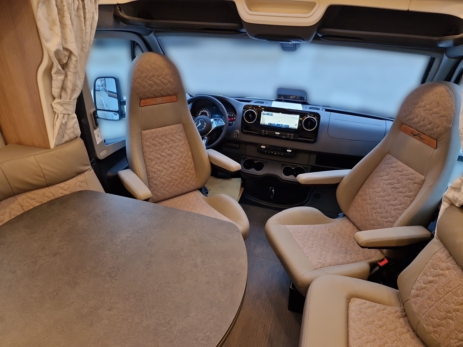 - Fahrerhausverdunklungssystem: Plissee an Front- und Seitenscheiben