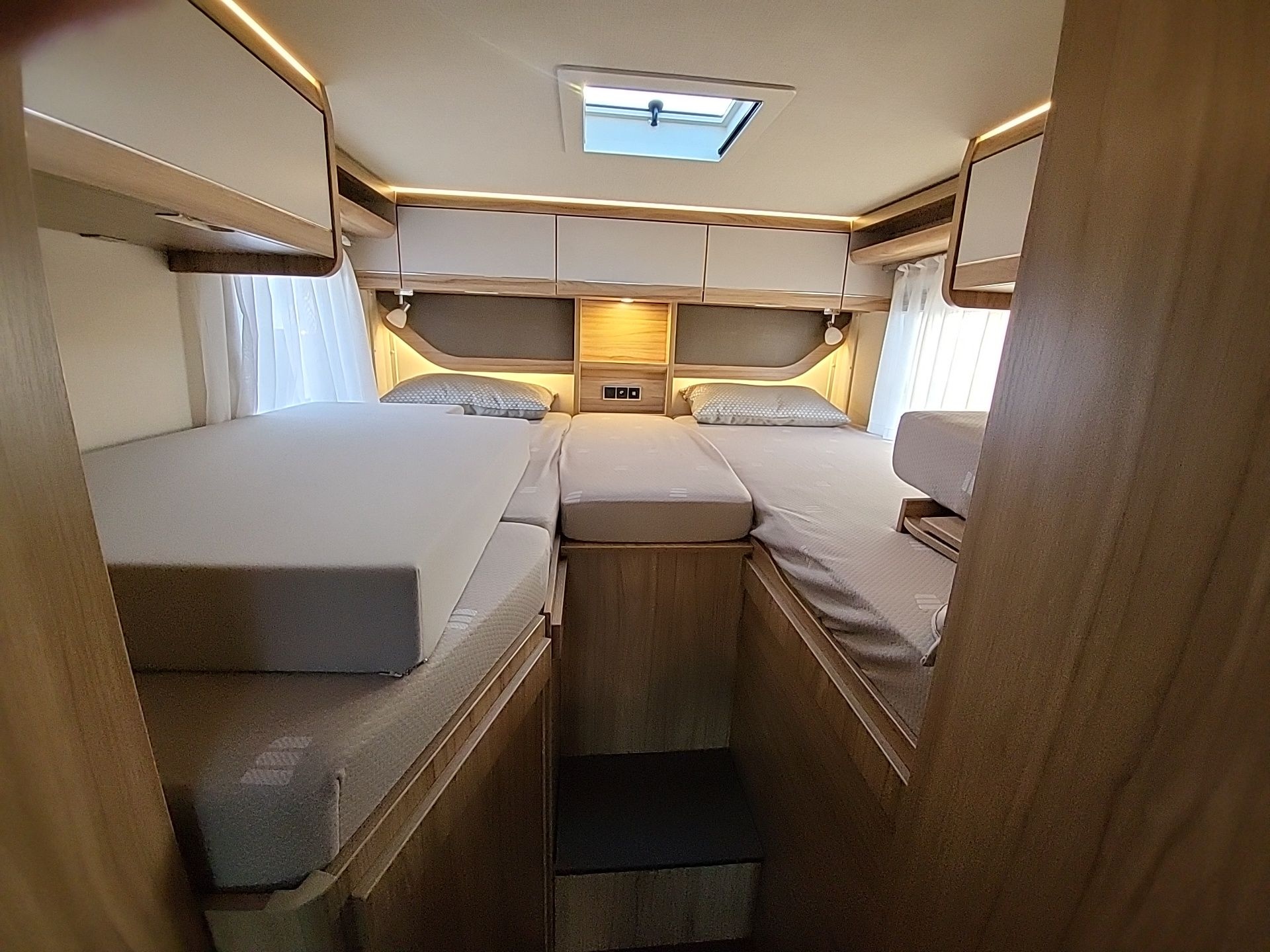 Zusatzpolster zwischen den Längseinzelbetten mit Aufstiegsleiter