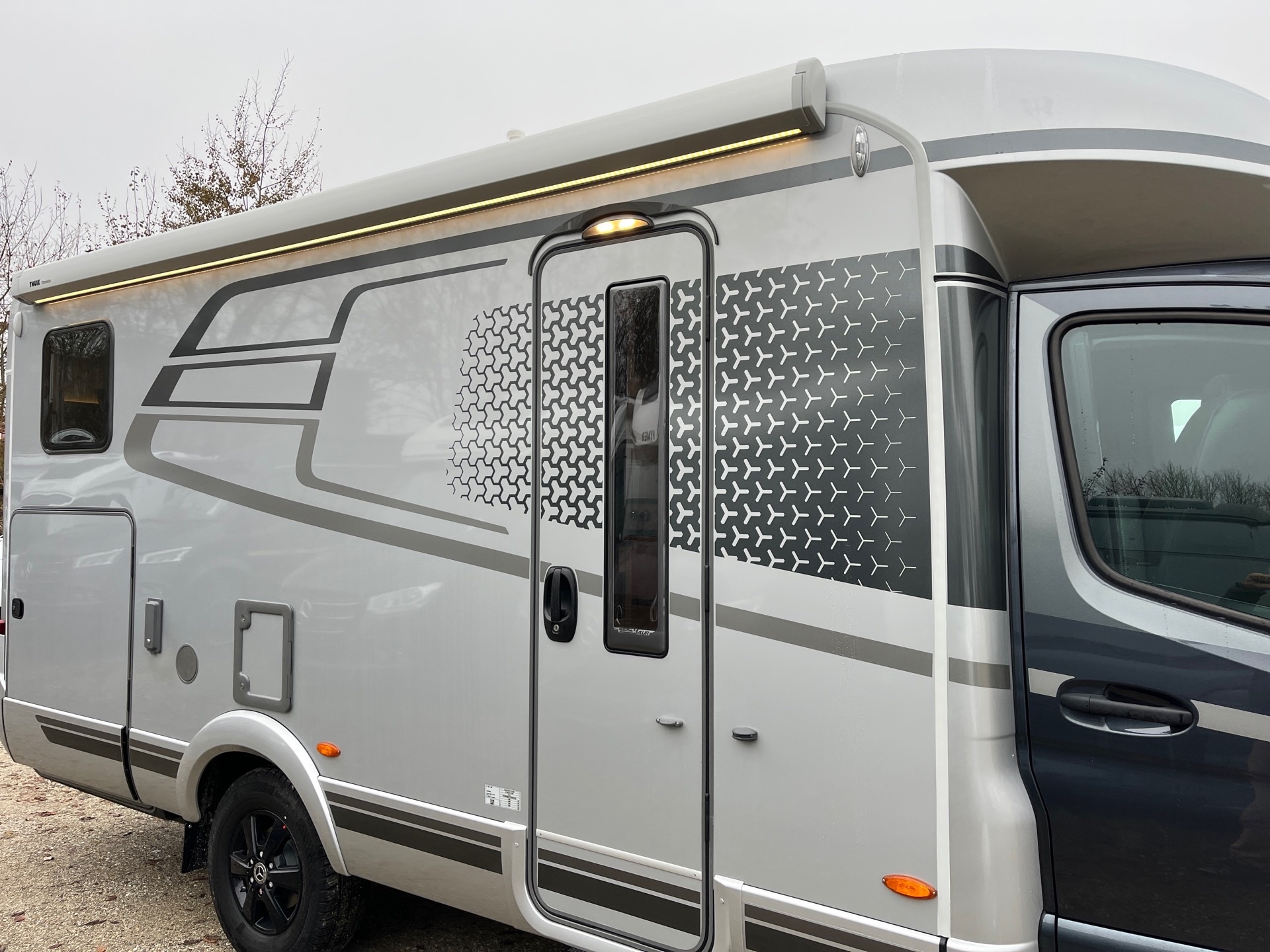 Markise (silber) inkl. dimmbarer LEDBeleuchtung. 400 x 250 cm