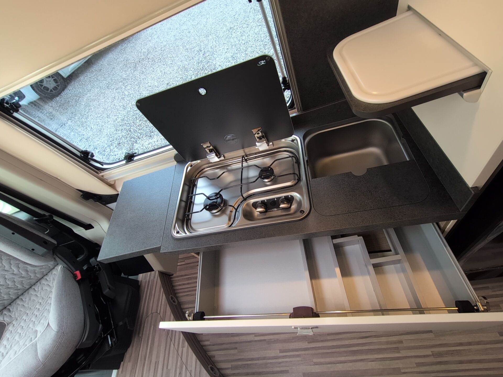 + Pilotensitze in Wohnraumstoff bezogen inkl. gepolsterten Armlehnen