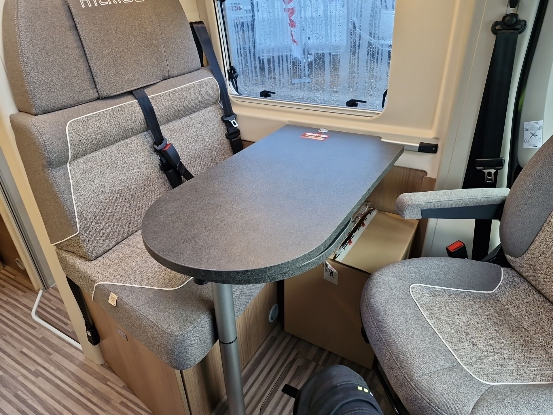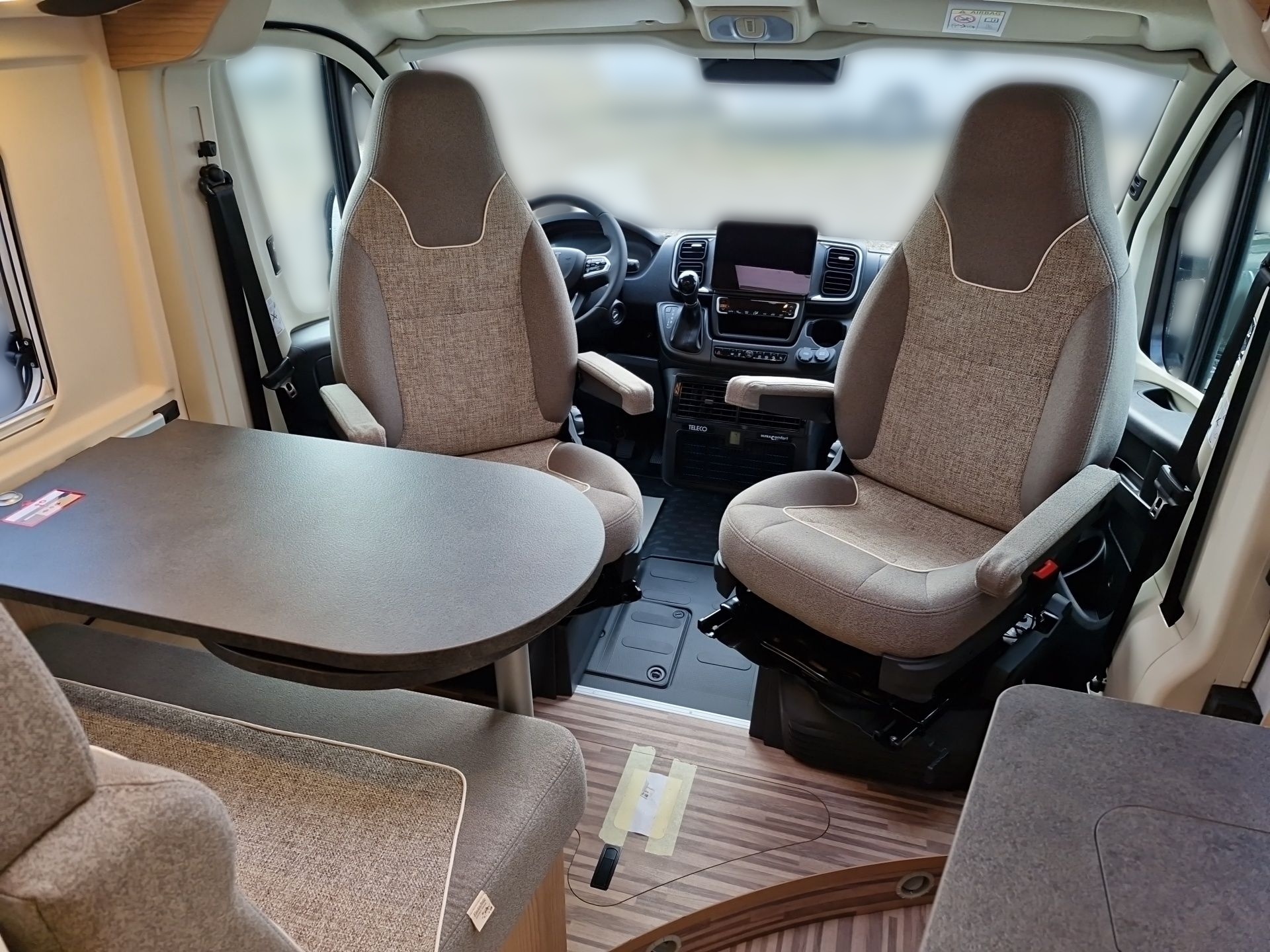 - Pilotensitze in Wohnraumstoff bezogen inkl. gepolsterten Armlehnen