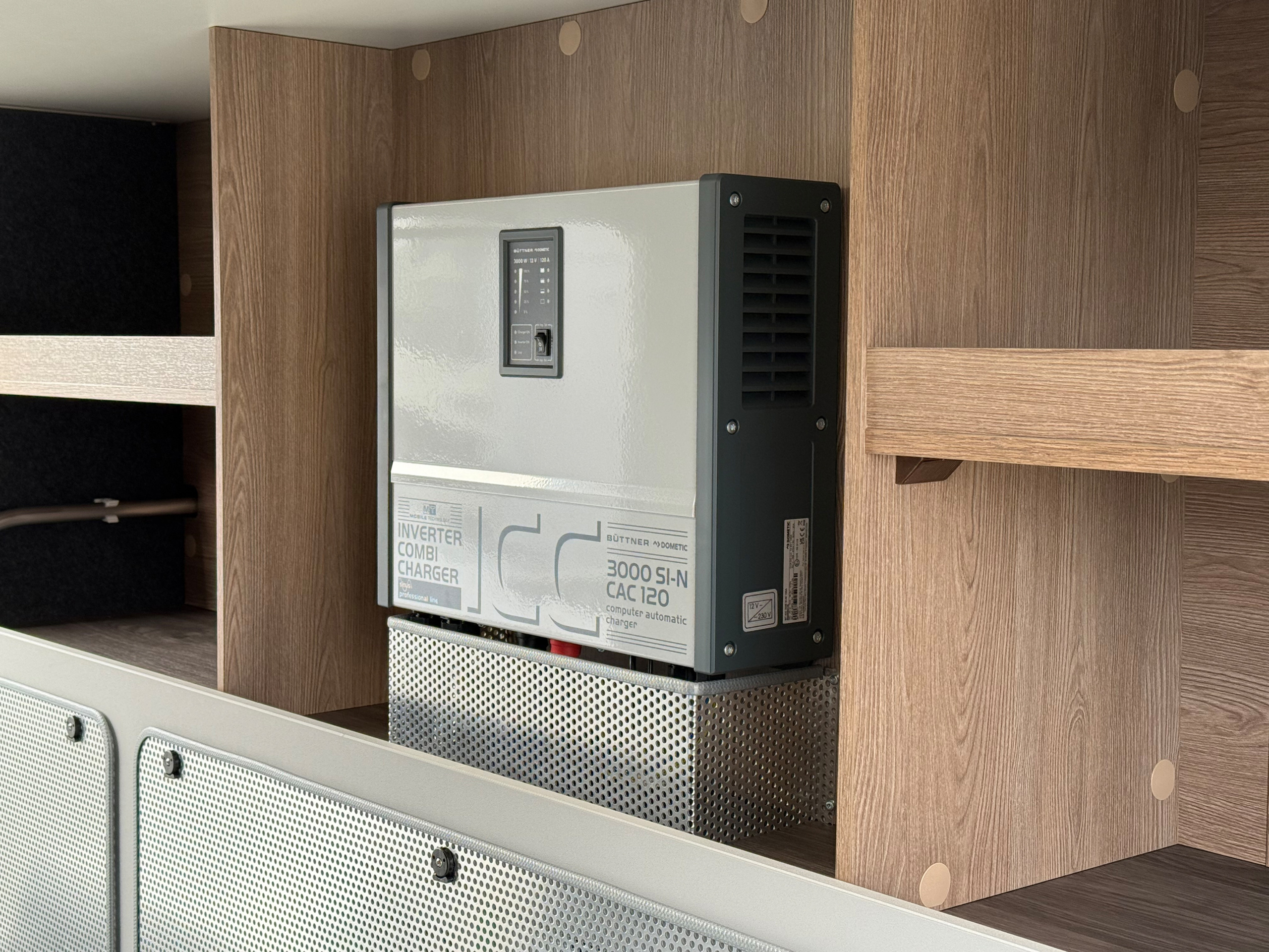 - Wechselrichter 3.000 Watt, bis 120 A Ladeleistung, mit Netzstärkevorwahl /