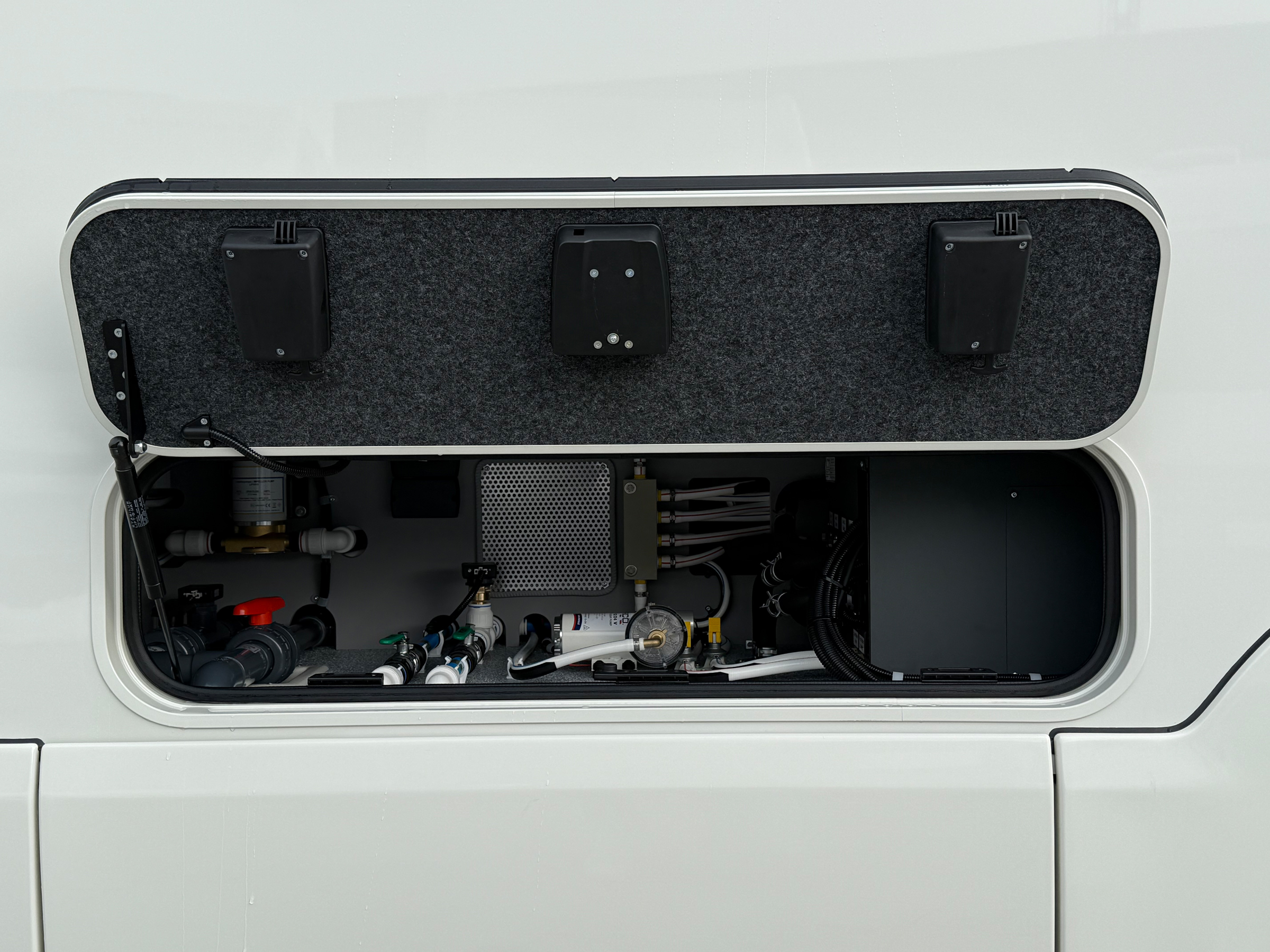 - Außendusche vor Hinterachse auf Fahrerseite