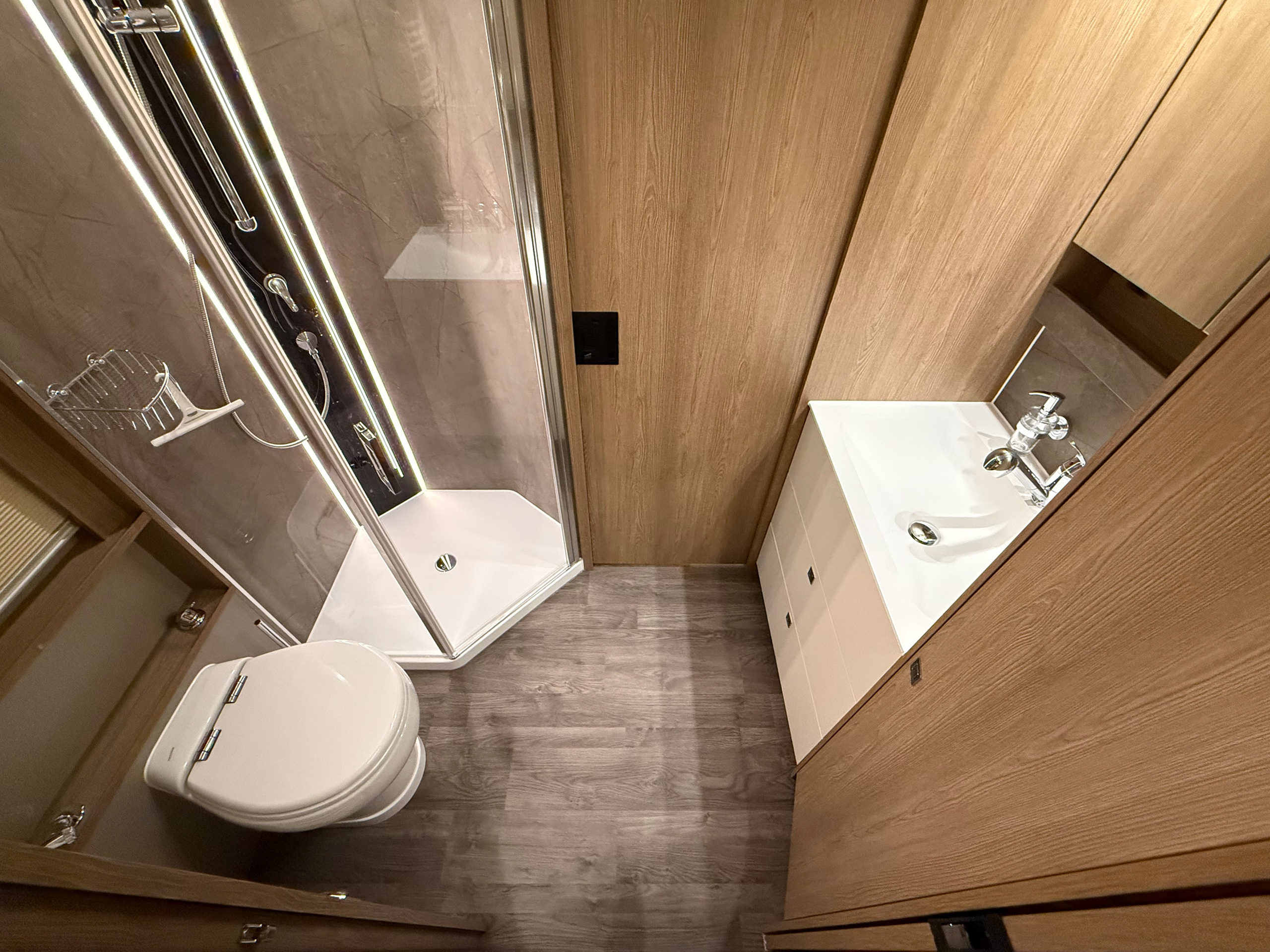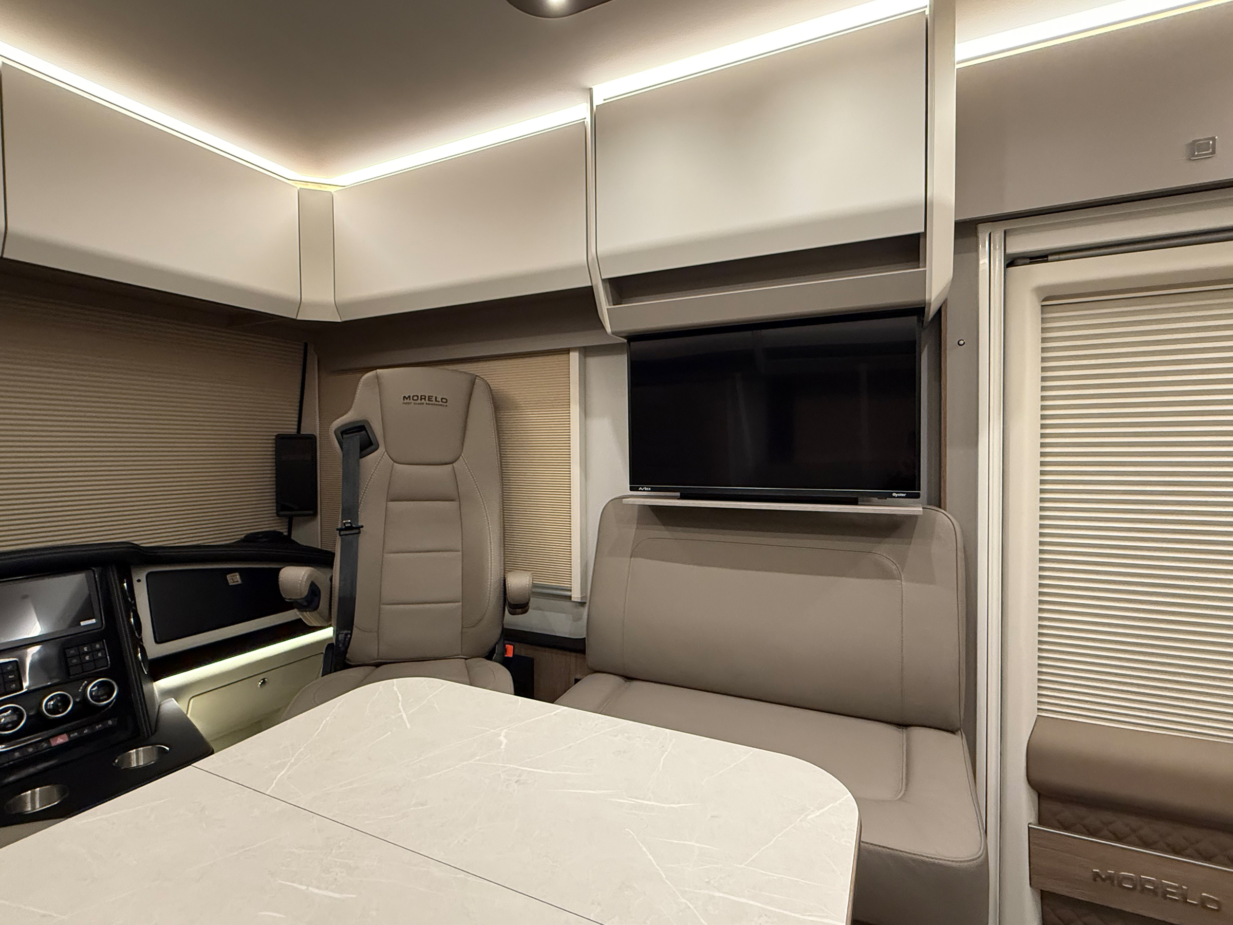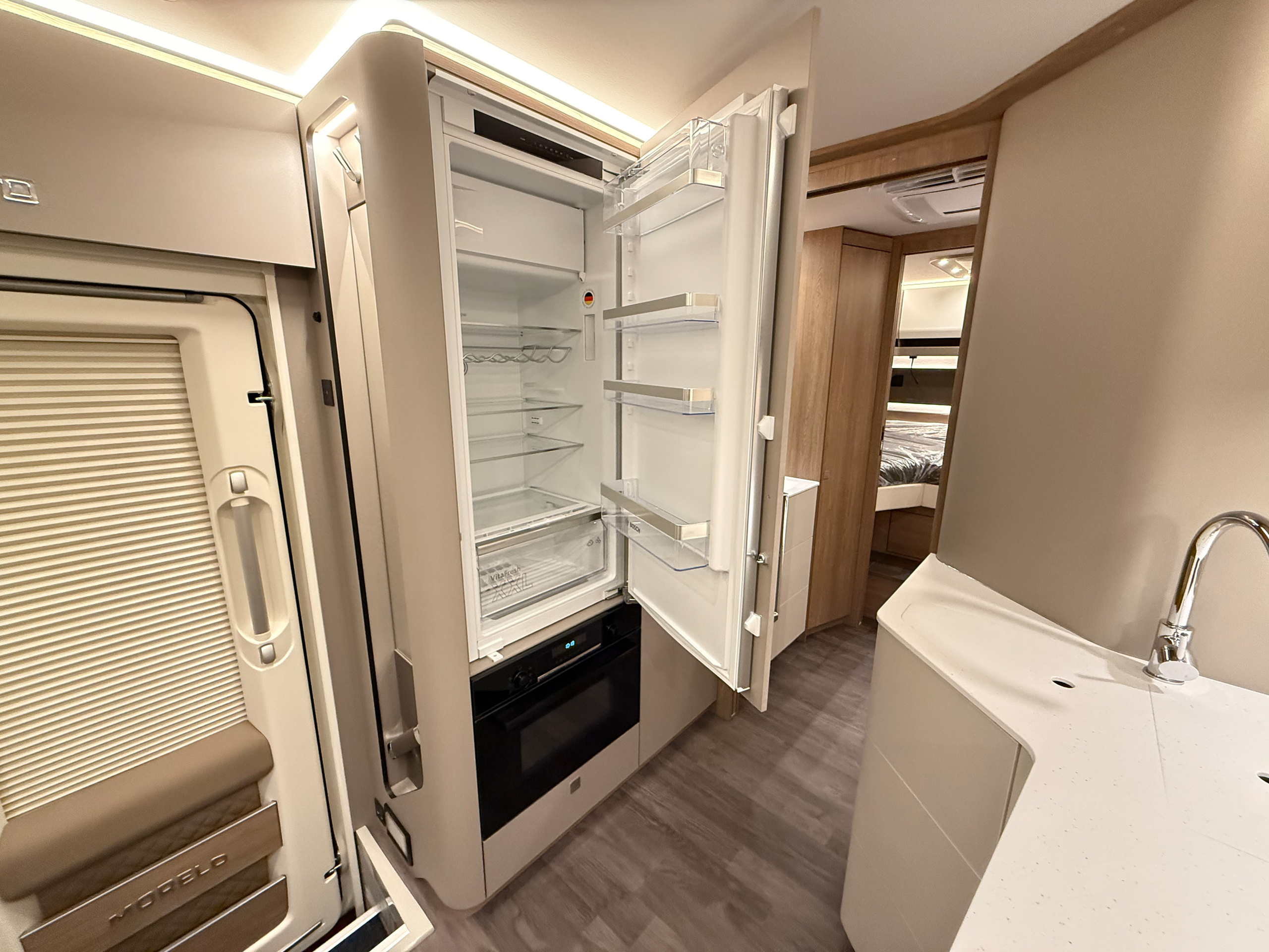 - 32" TV im Vitrinenoberschrank Beifahrerseite, 27" TV im Schlafraum