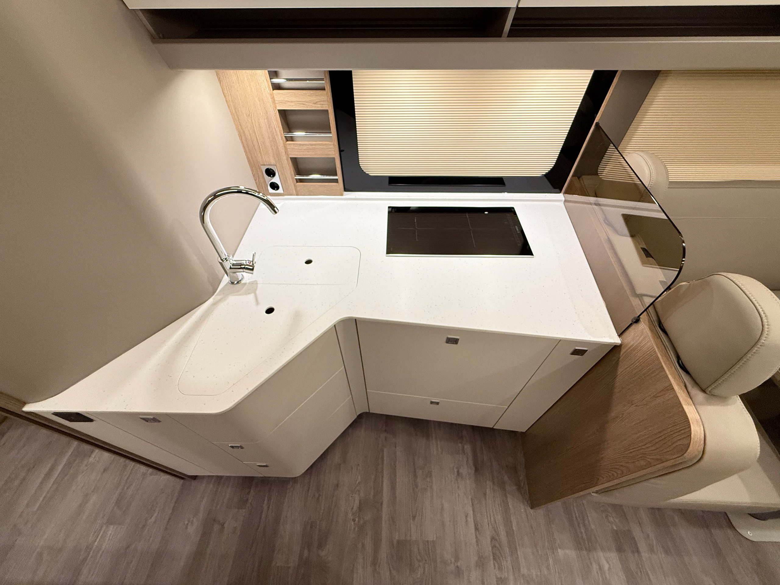 - Induktionskochfeld (zwei Induktionskochzonen) statt Dreiflamm-Gasherd