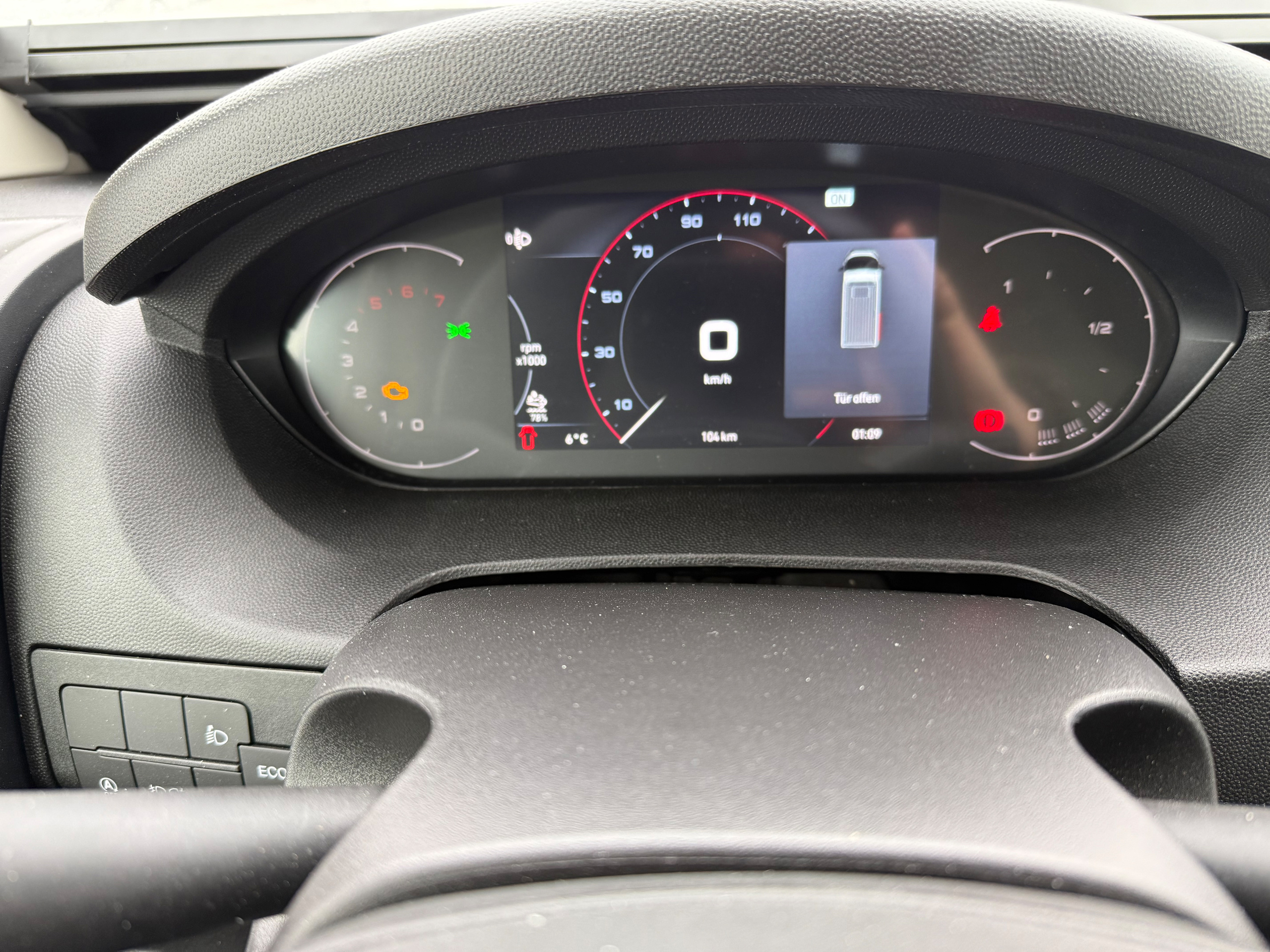 - Das Fahrzeug hat 104 km, die durch Probe- und Bewegungsfahrten entstanden sind.