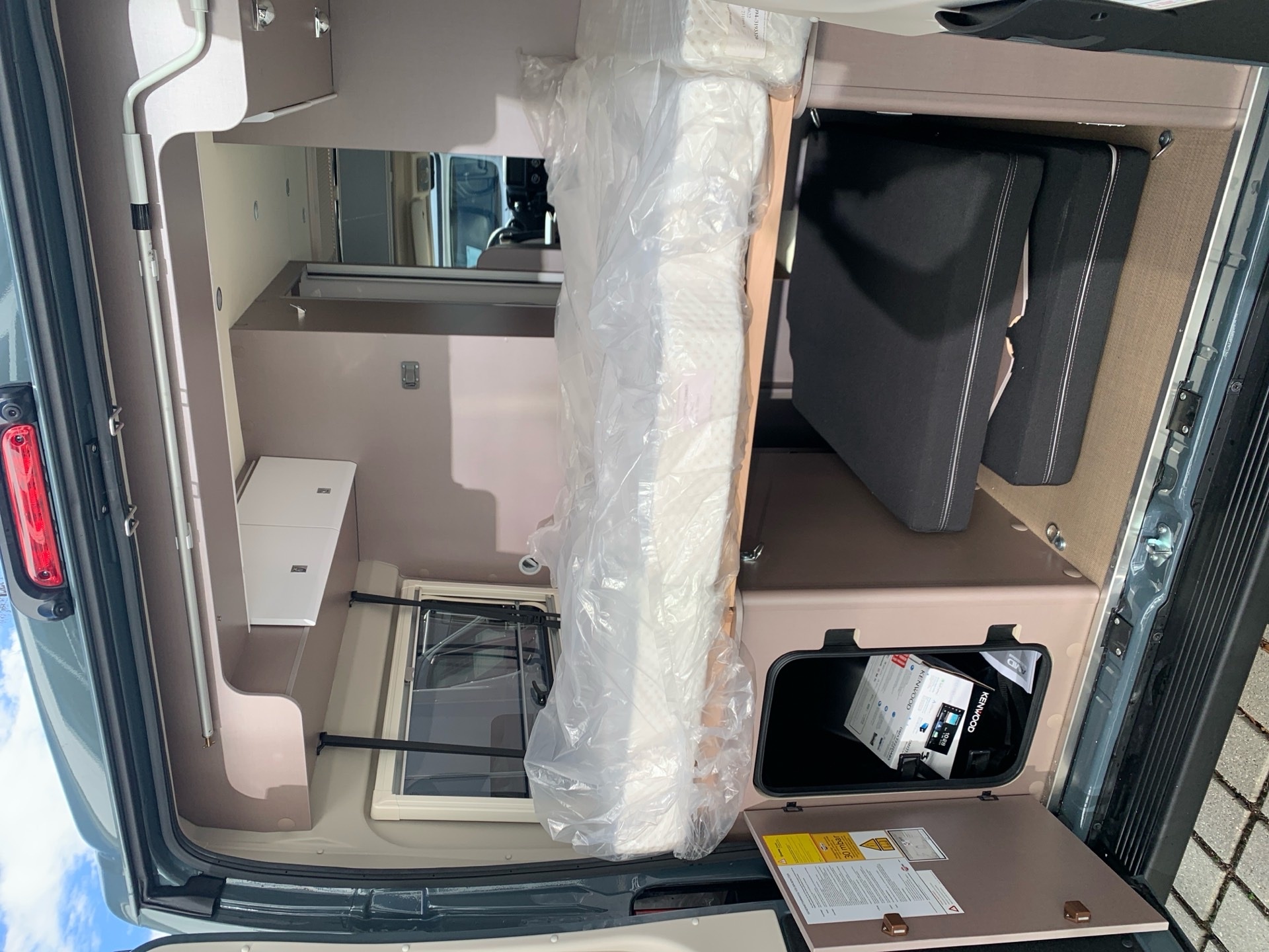 -Rahmenfenster hinten links inkl. Verdunkelungsrollo und Fliegenschutz