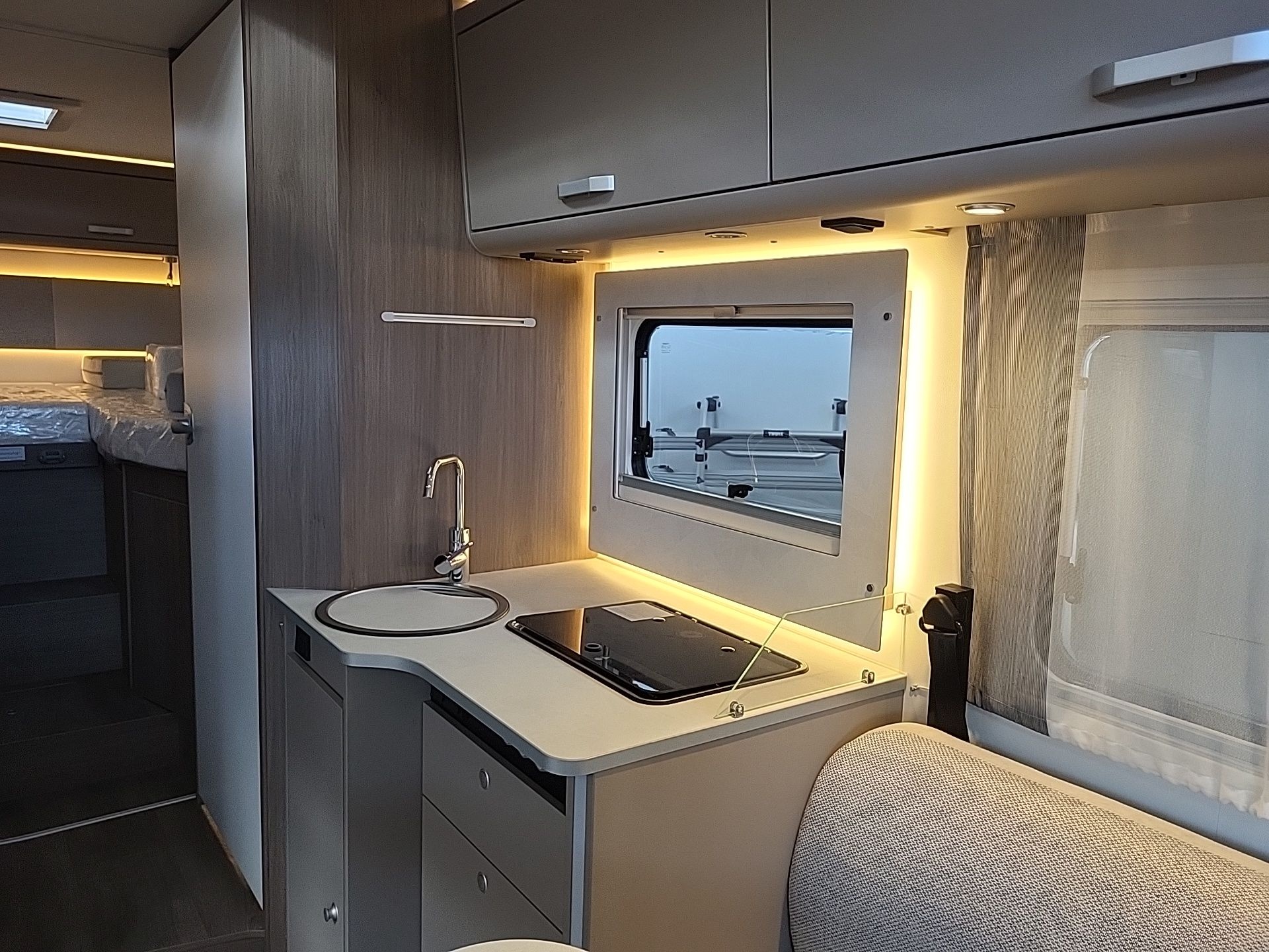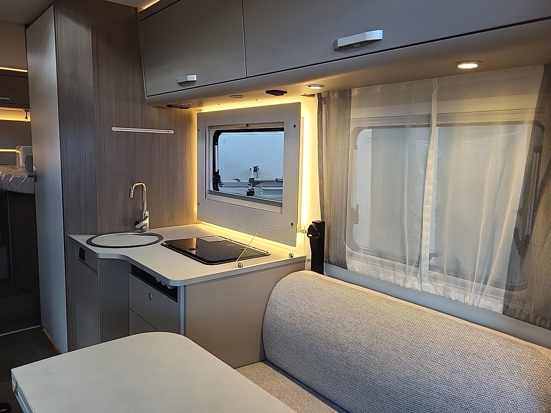 -Bilder zeigen vergleichbar ausgestattetes Ausstellungsfahrzeug ohne Hubbett!