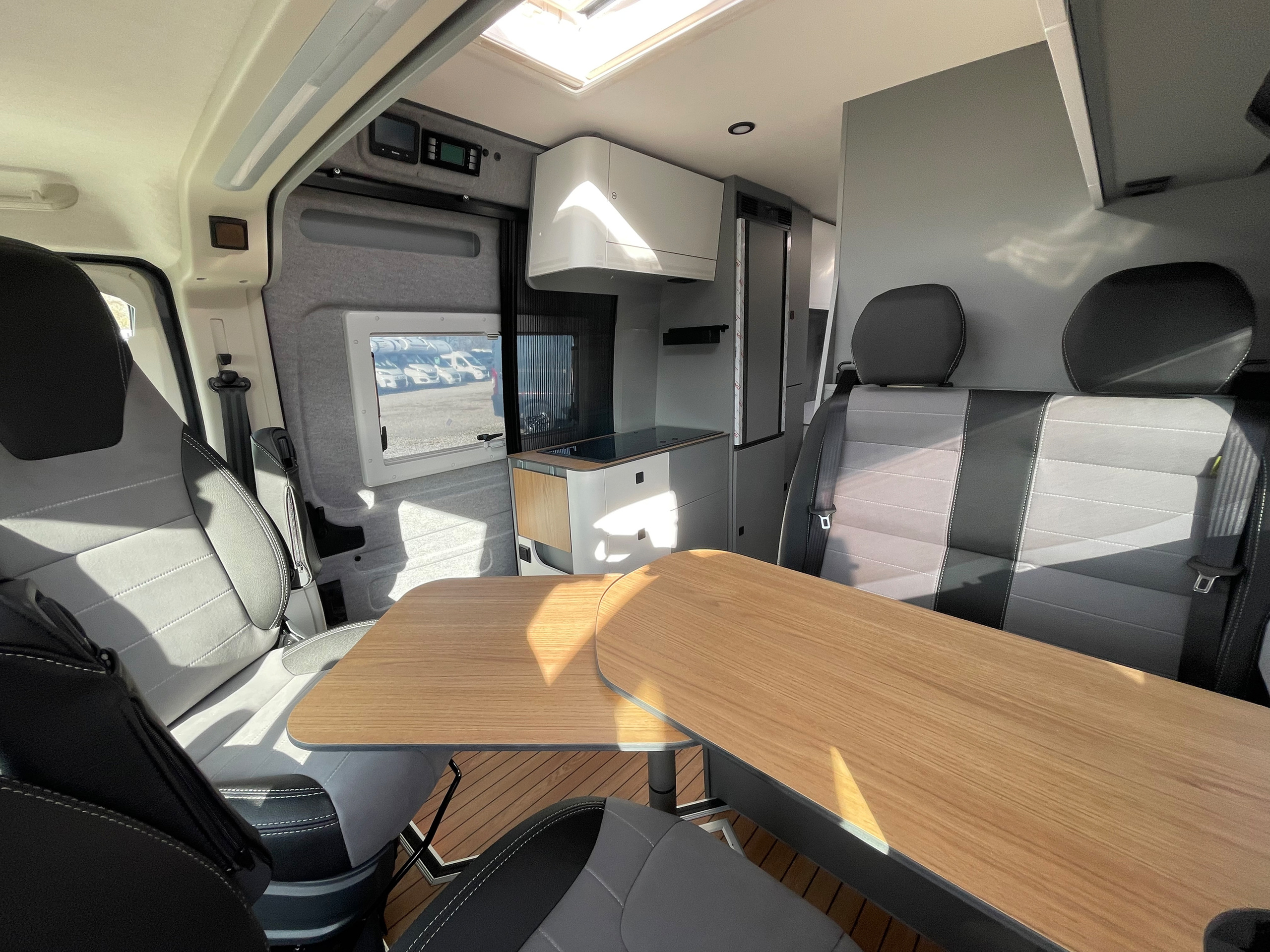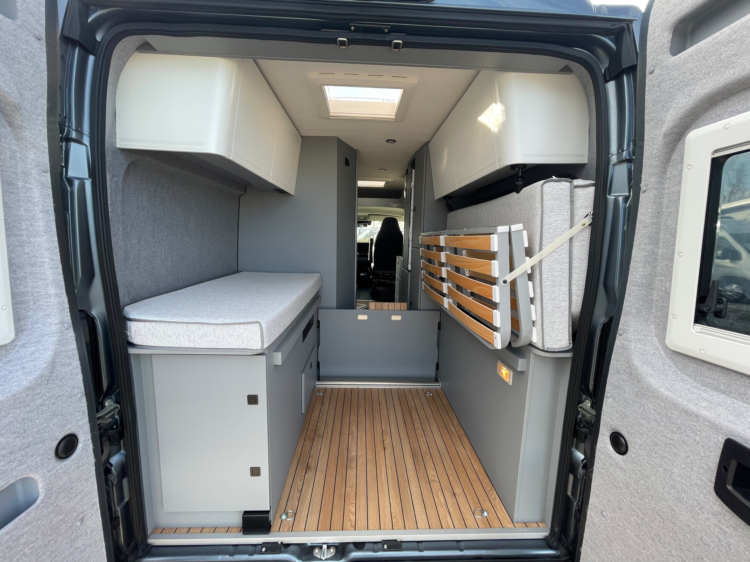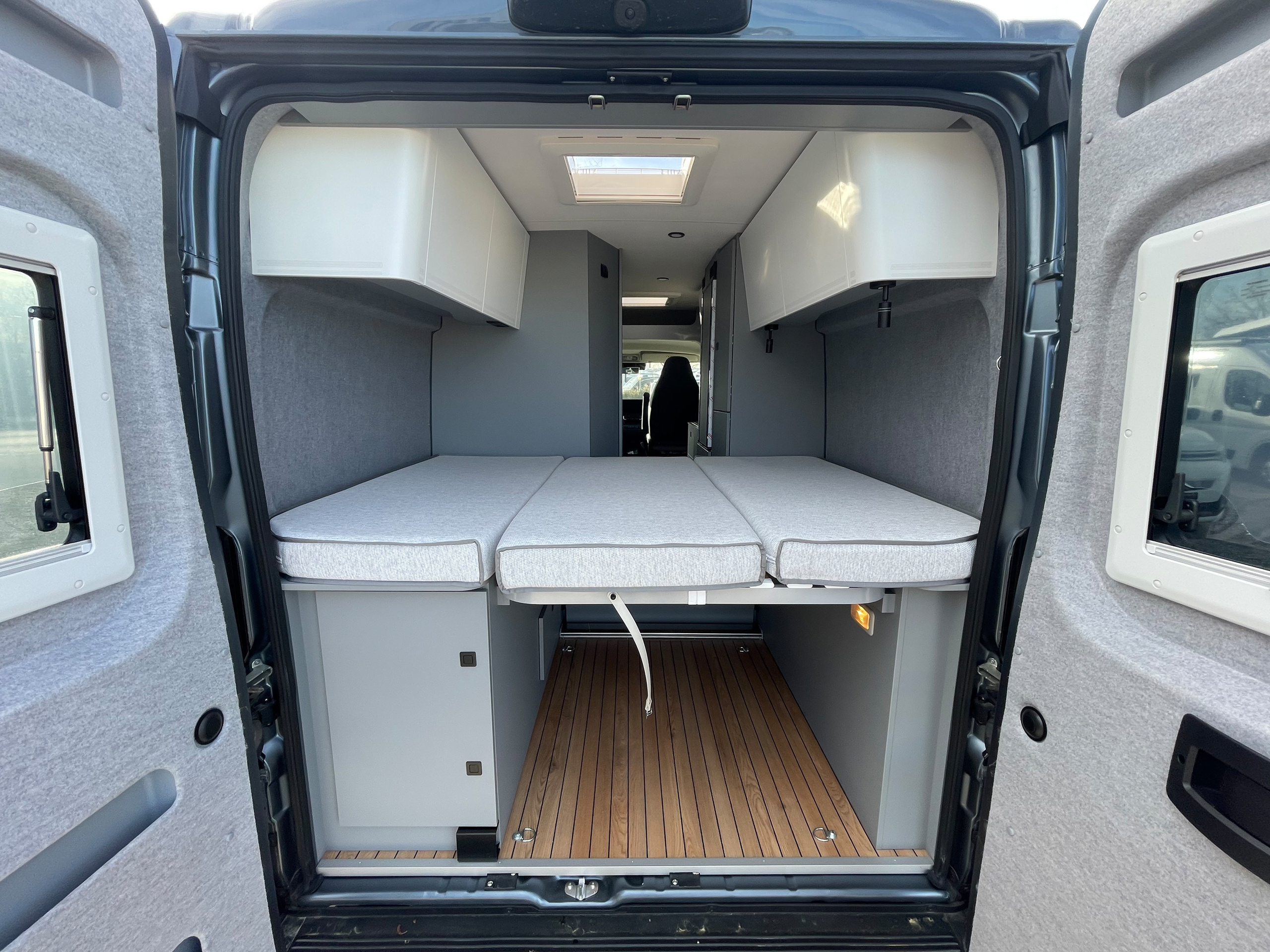 • 3er-Satz Steckdosen (USB, 12V, 220V) hinten über Bett Fahrerseite