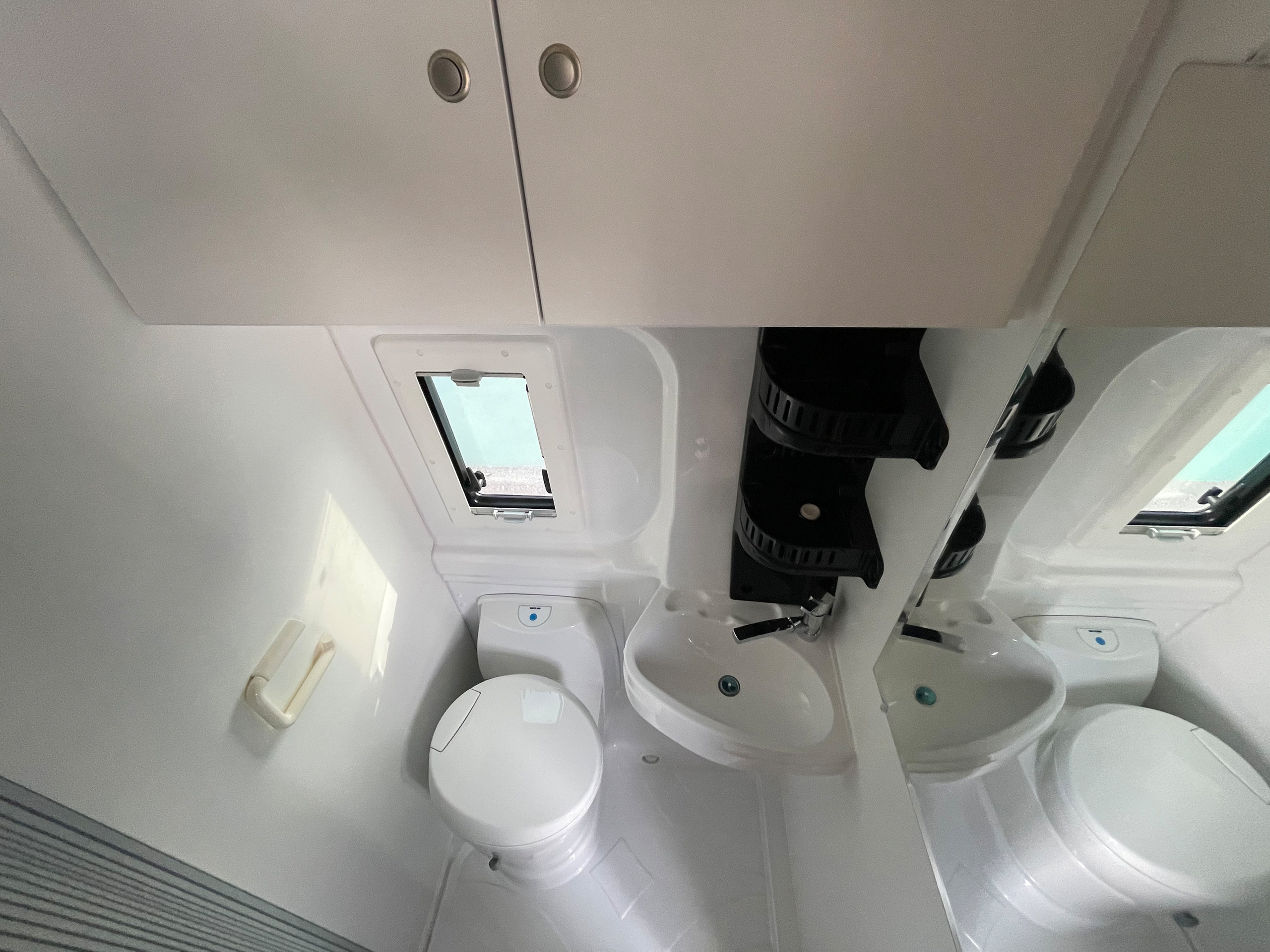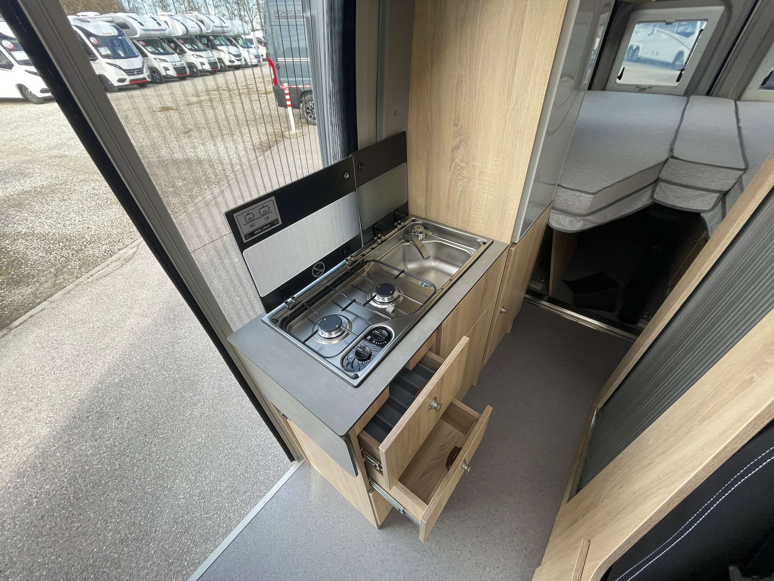 • 3er-Satz Steckdosen (USB, 12V, 220V) hinten über Bett rechts