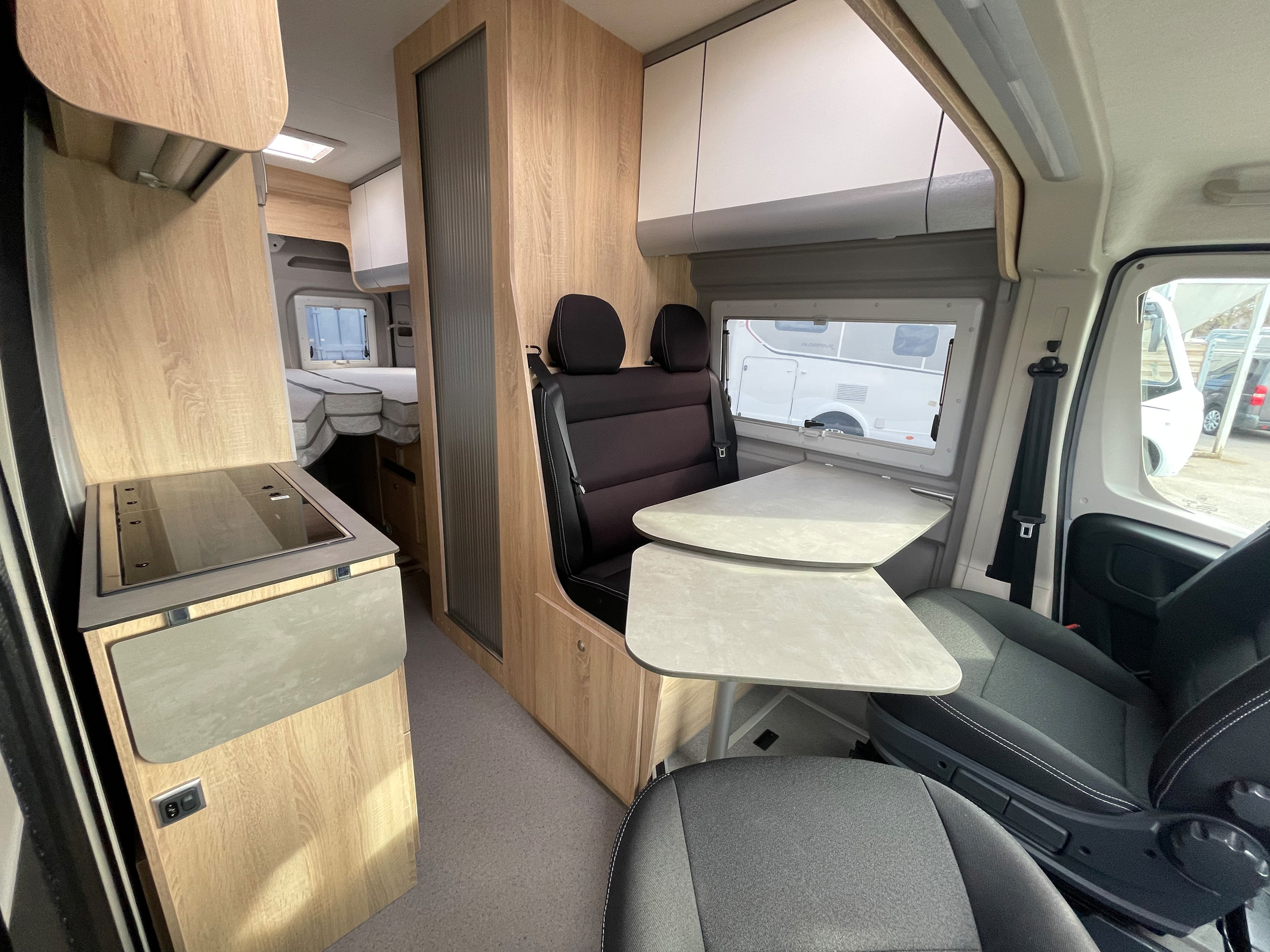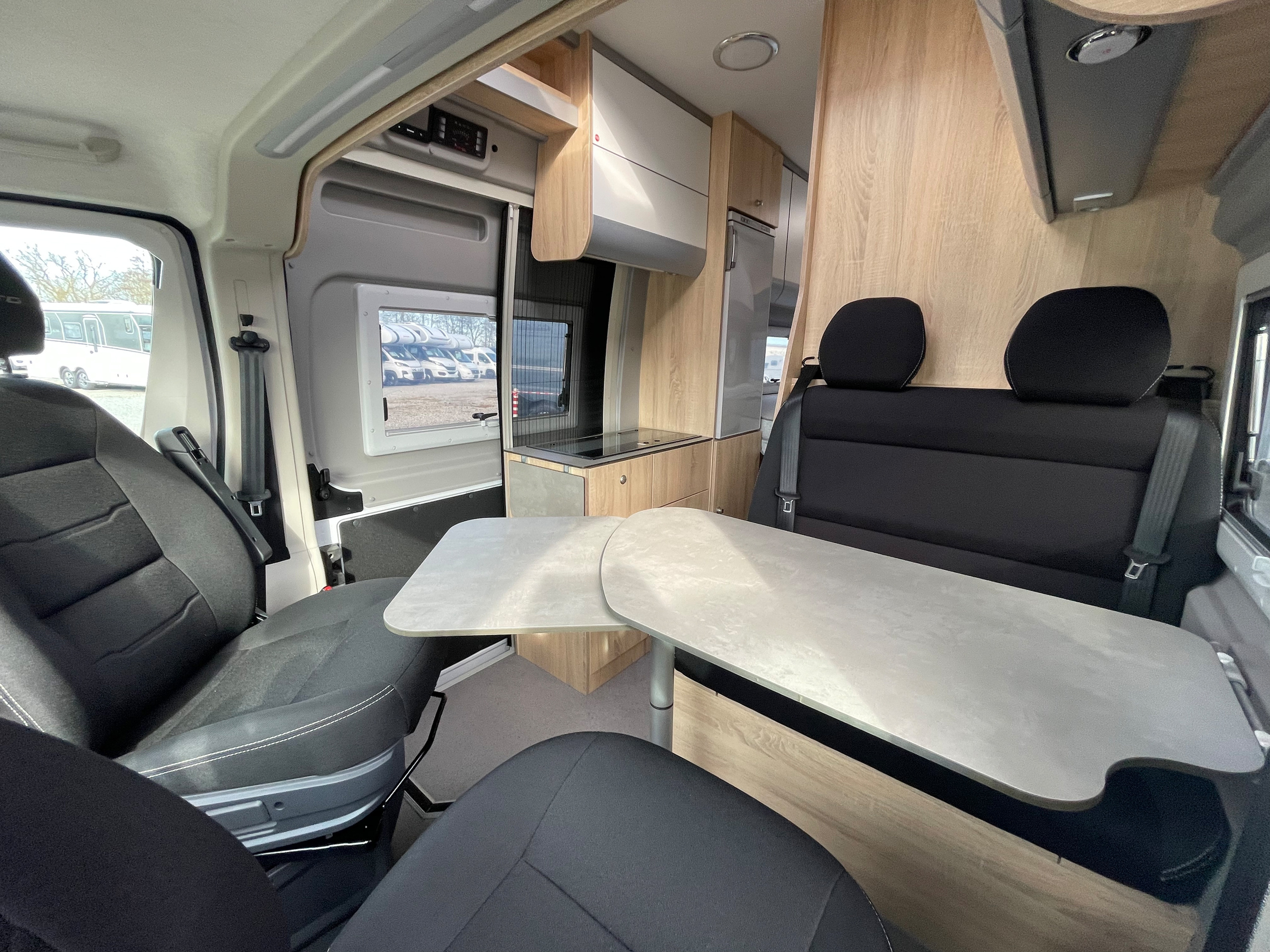 • 3er-Satz Steckdosen (USB, 12V, 220V) hinten über Bett links
