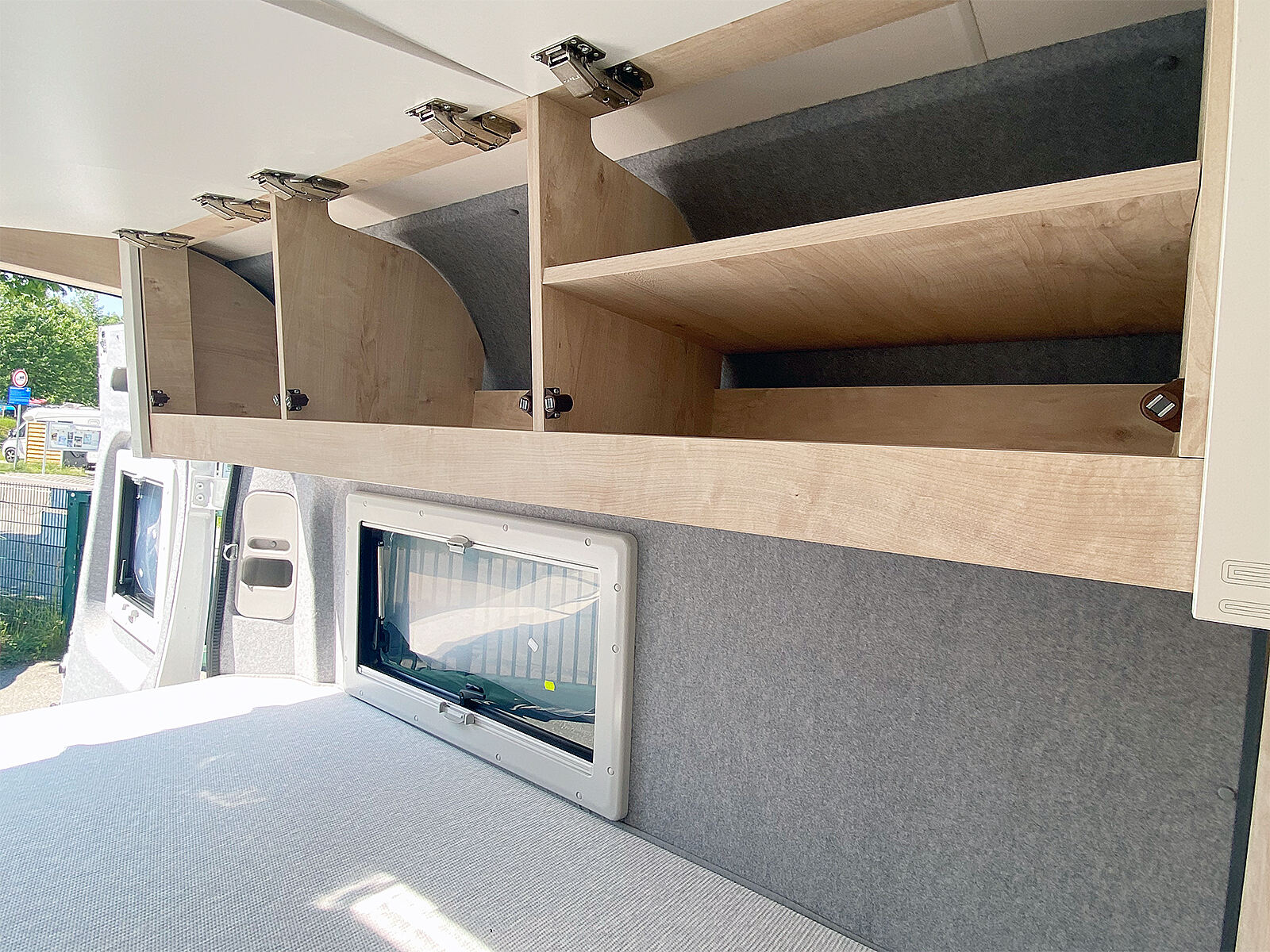 - 3er-Satz Steckdosen (USB, 12V, 220V) hinten über Bett rechts