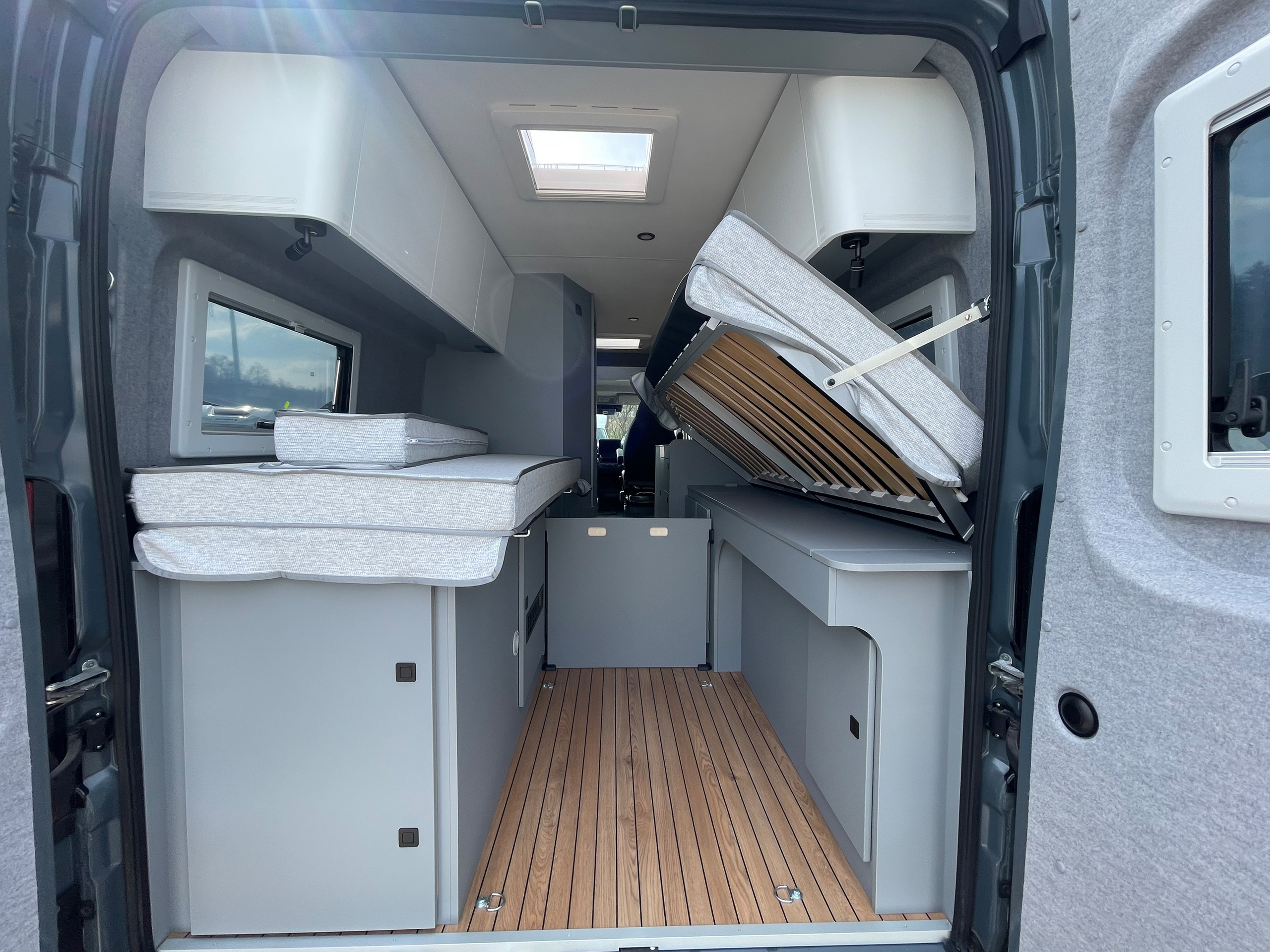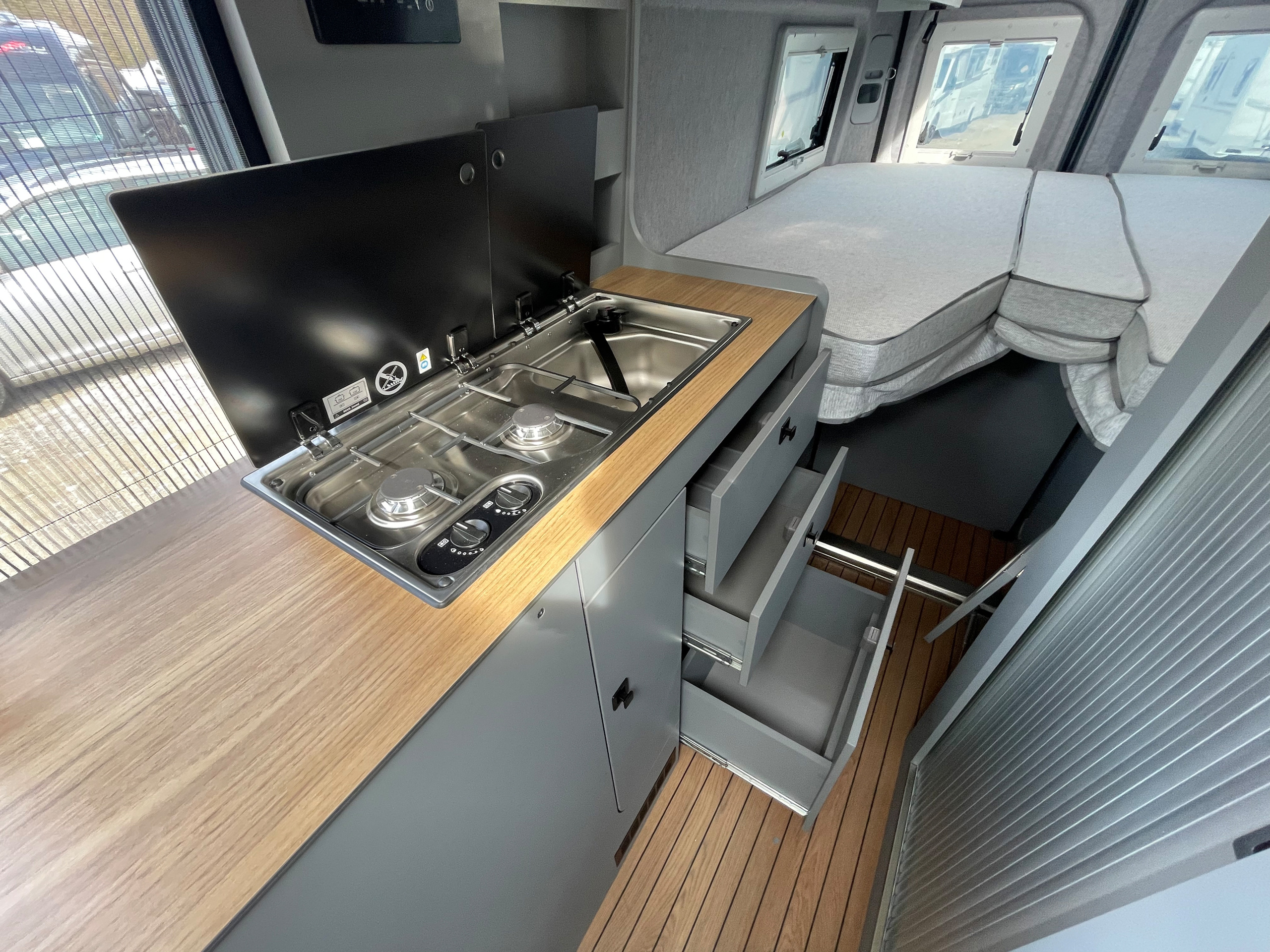 - 3er-Satz Steckdosen (USB, 12V, 220V) hinten über Bett Fahrerseite