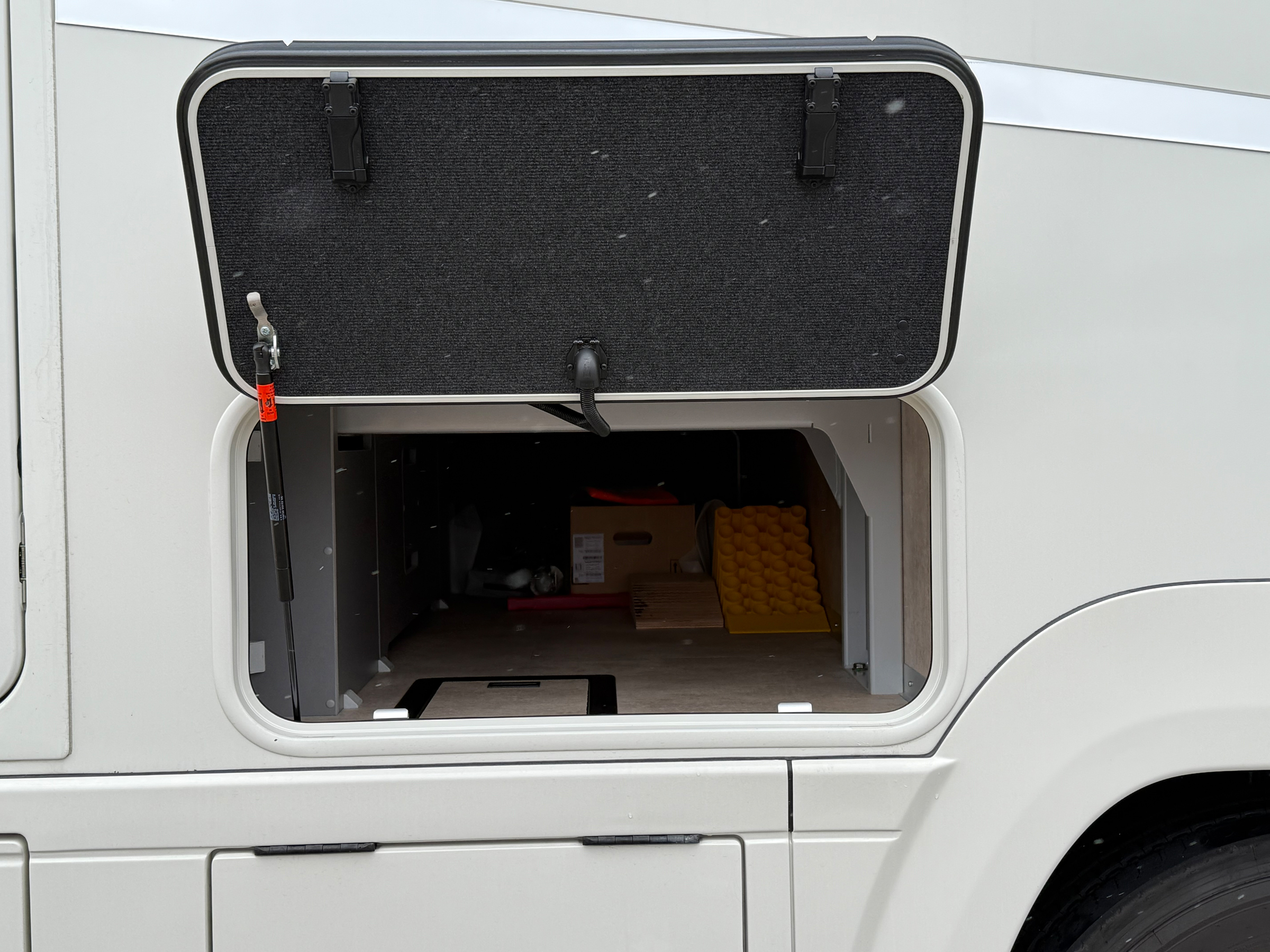 - Stauraumklappen mit Gasdruckfedern und ohne Griffmulden
