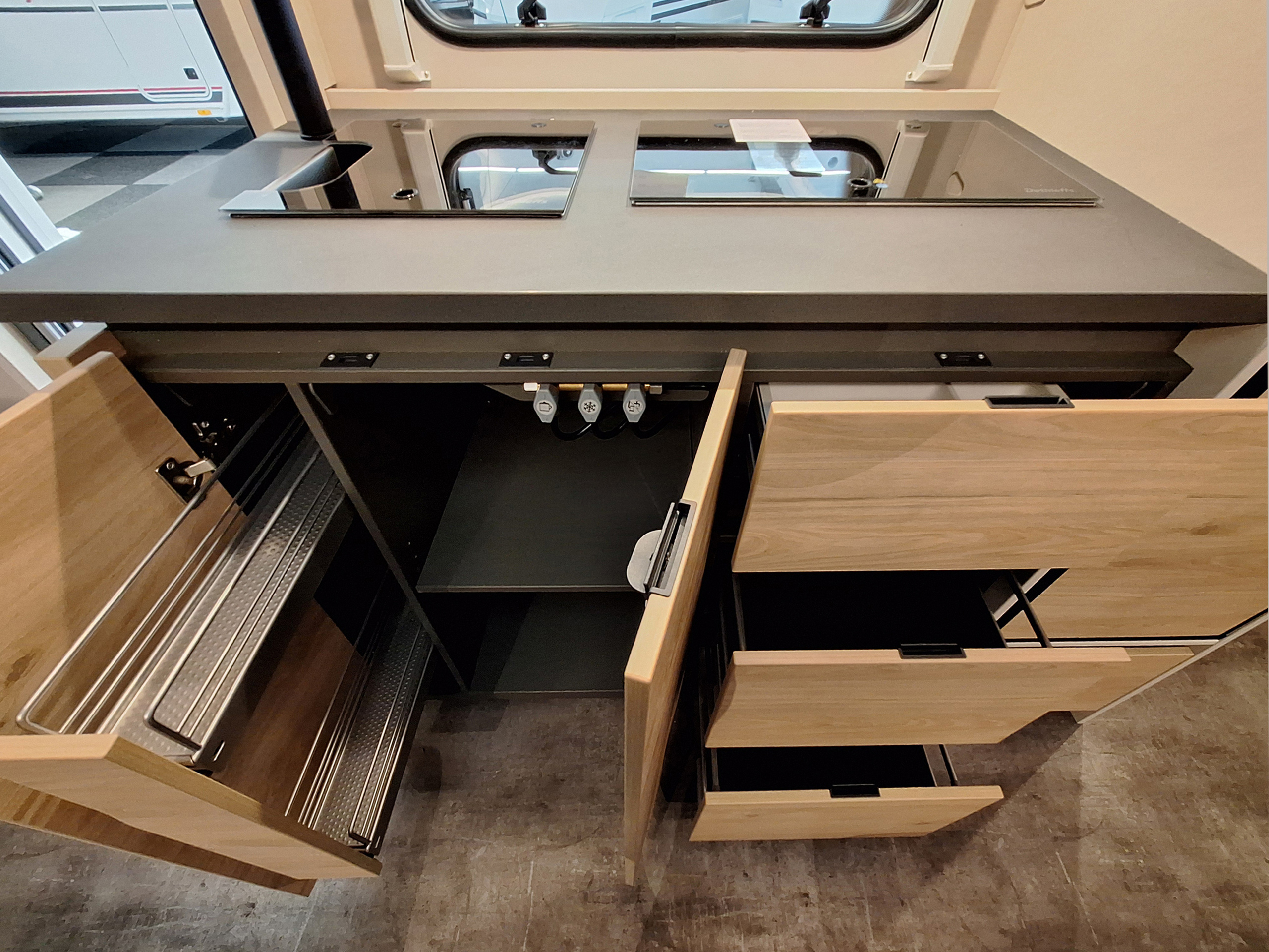 - Multifunktions-Außenanschluss 12V, 220V, TV und SAT