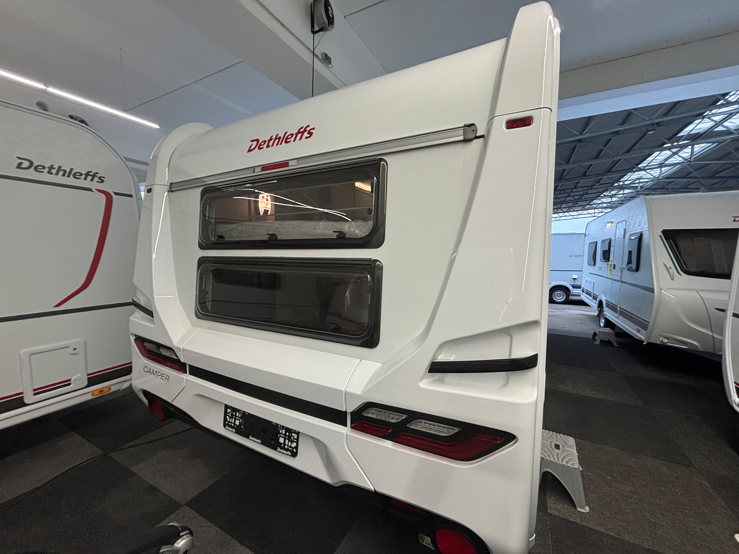 StylingPaket weiß (Einachser) + 17 Zoll Alufelgen im DethleffsDesign (Einachser) + Deichselabdeckung + Großflächige Abstützfüße, 4 St. + VollgummiStützrad mit Stützlastanzeige + Rangiergriffe in ChromAusführung + Heckleuchtenträger mit hohem Aufsatz und Dachreling + Bugfront mit hohem Aufsatz und Dachreling + Außenblech in Glattblech weiß Duschpaket + Duschausstattung inkl. Duscharmatur und vorhang + CityWasseranschluss Auflastung 2.000 kg (inkl. Alurad 225/70 R15 C LI112) Wohnwelt Rooftop Toilettenraum in alternativer Ausführung Warmwasserheizung WarmwasserFußbodenerwärmung (nur i. Verb. mit SA 205)3) Fracht/TÜV/Brief/Übergabeinspektion