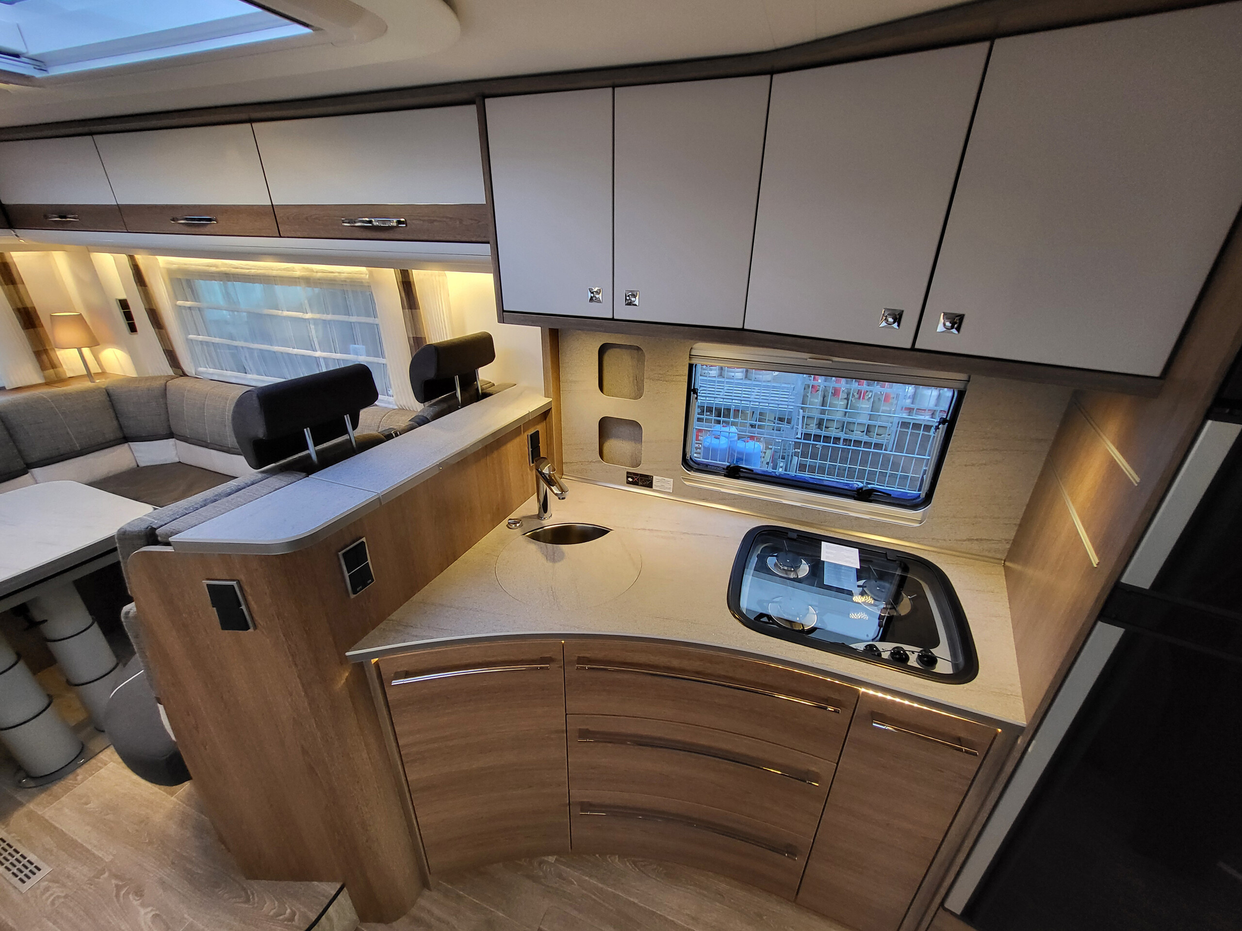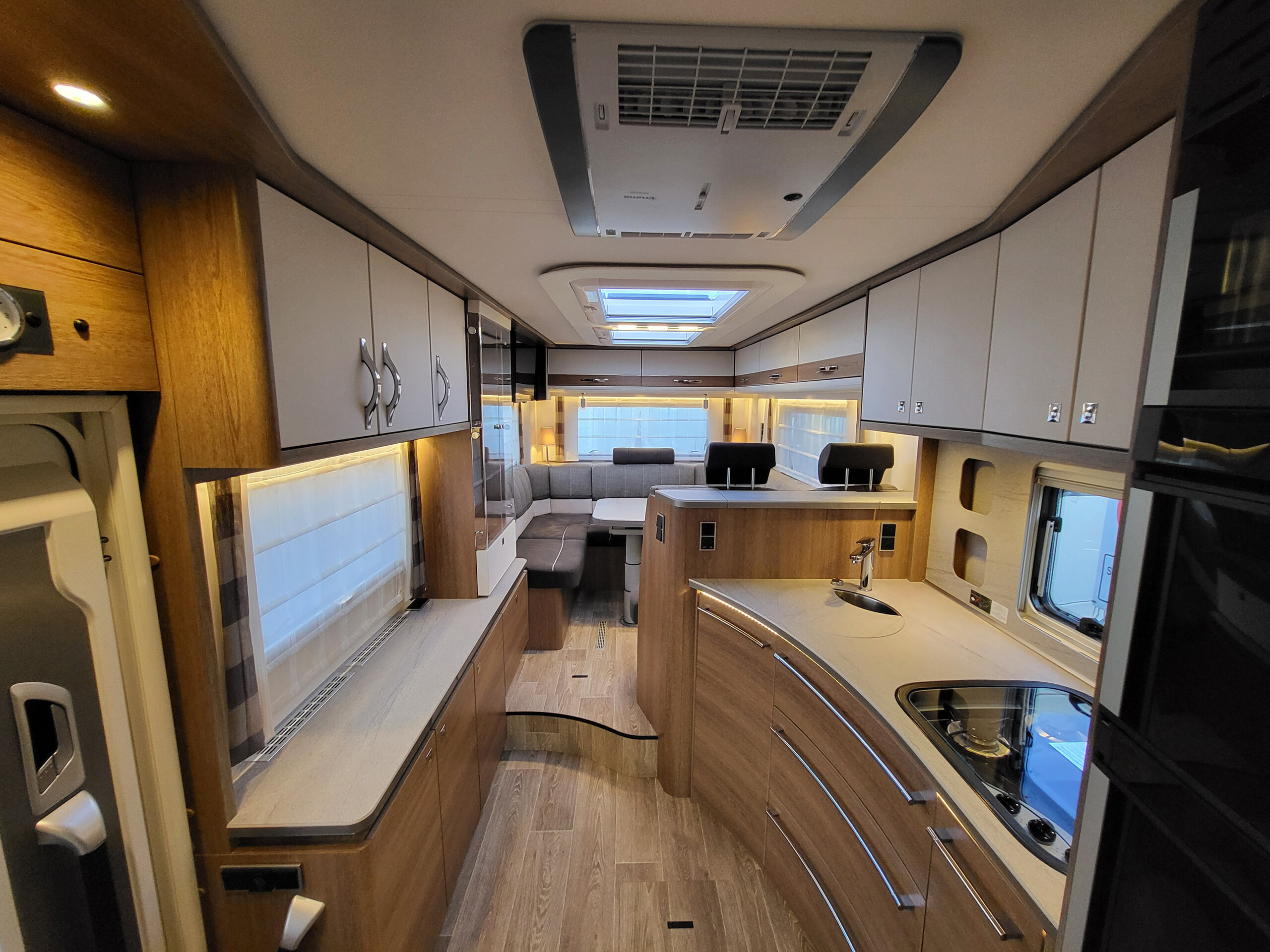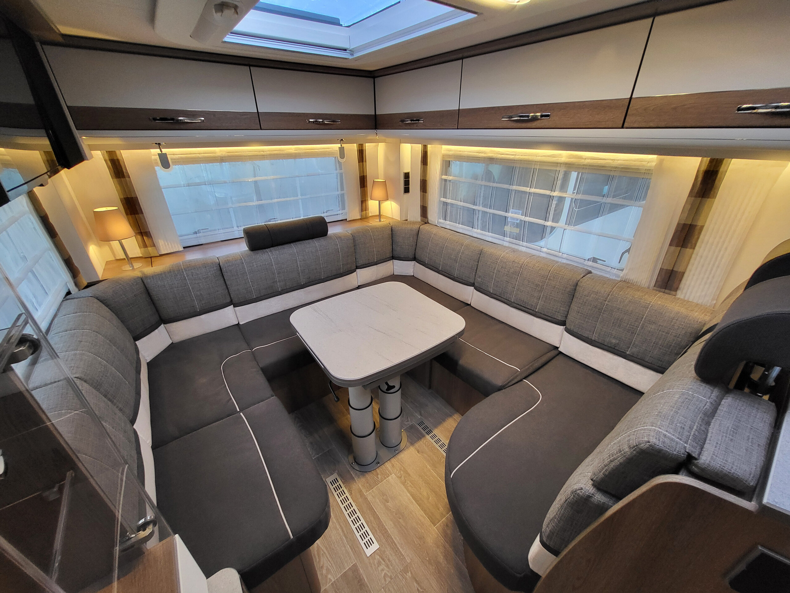 - Indirekte Ambientebeleuchtung über den Dachstauschränken