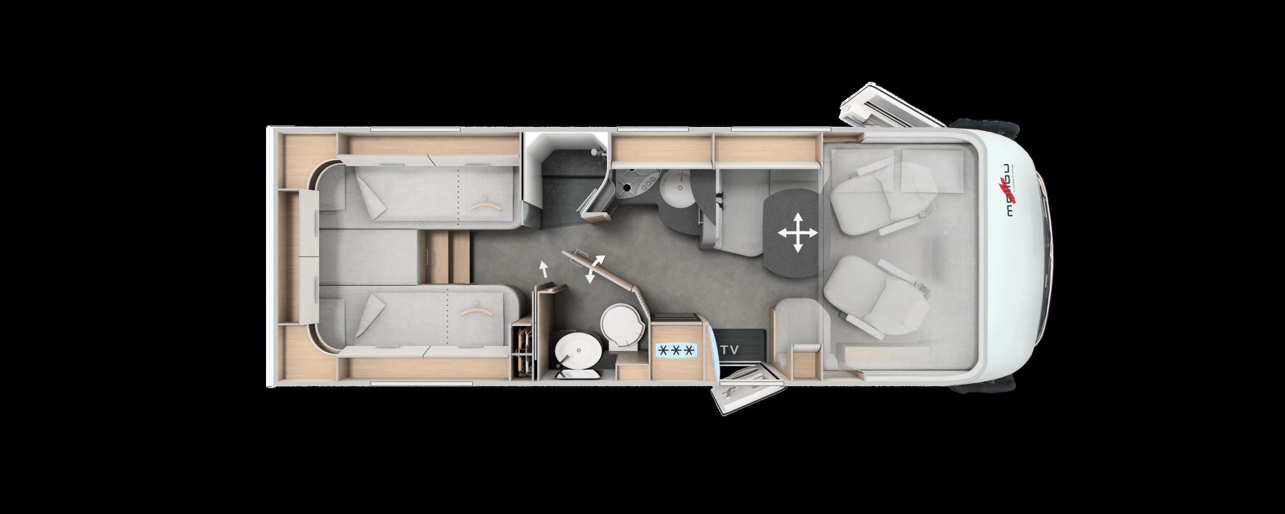 •    USB-Steckdose im Dachstauschrank über Heckbett