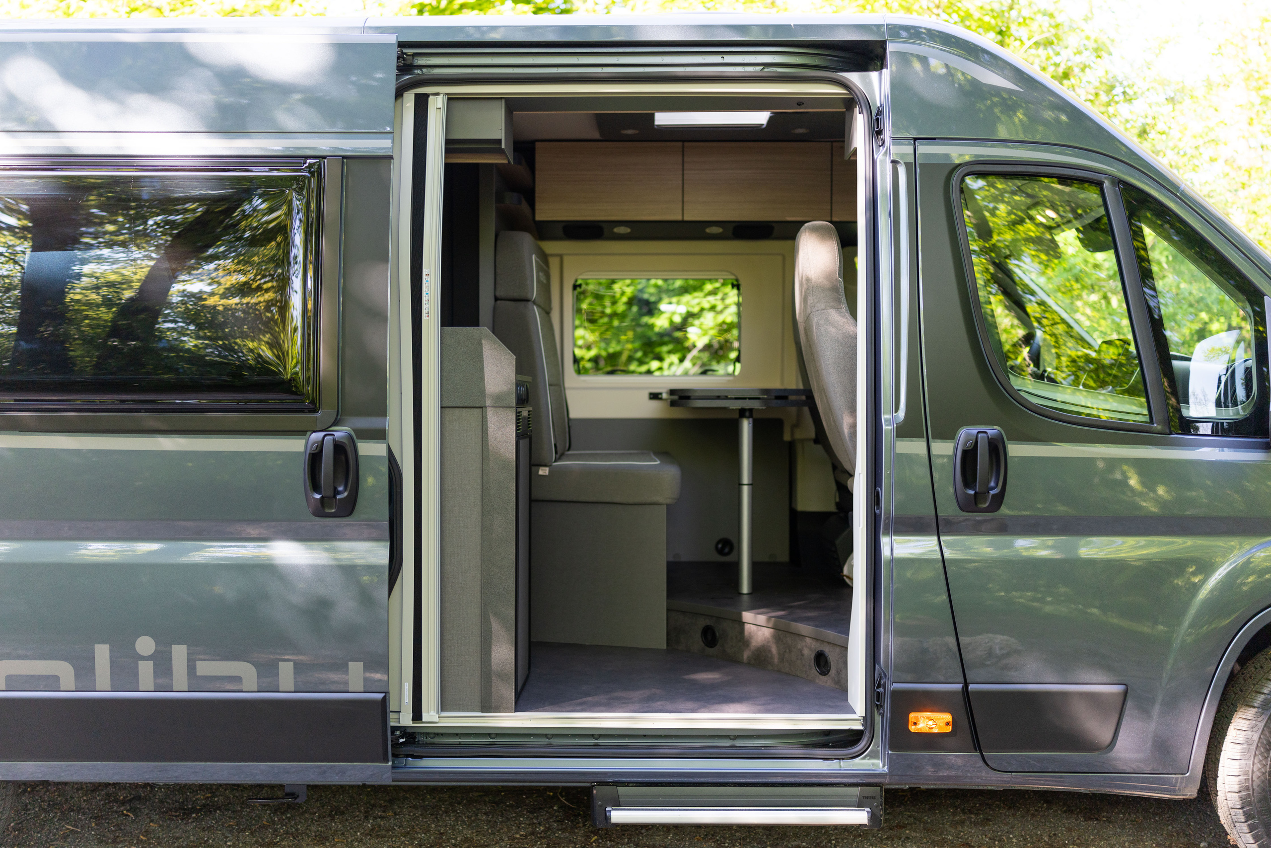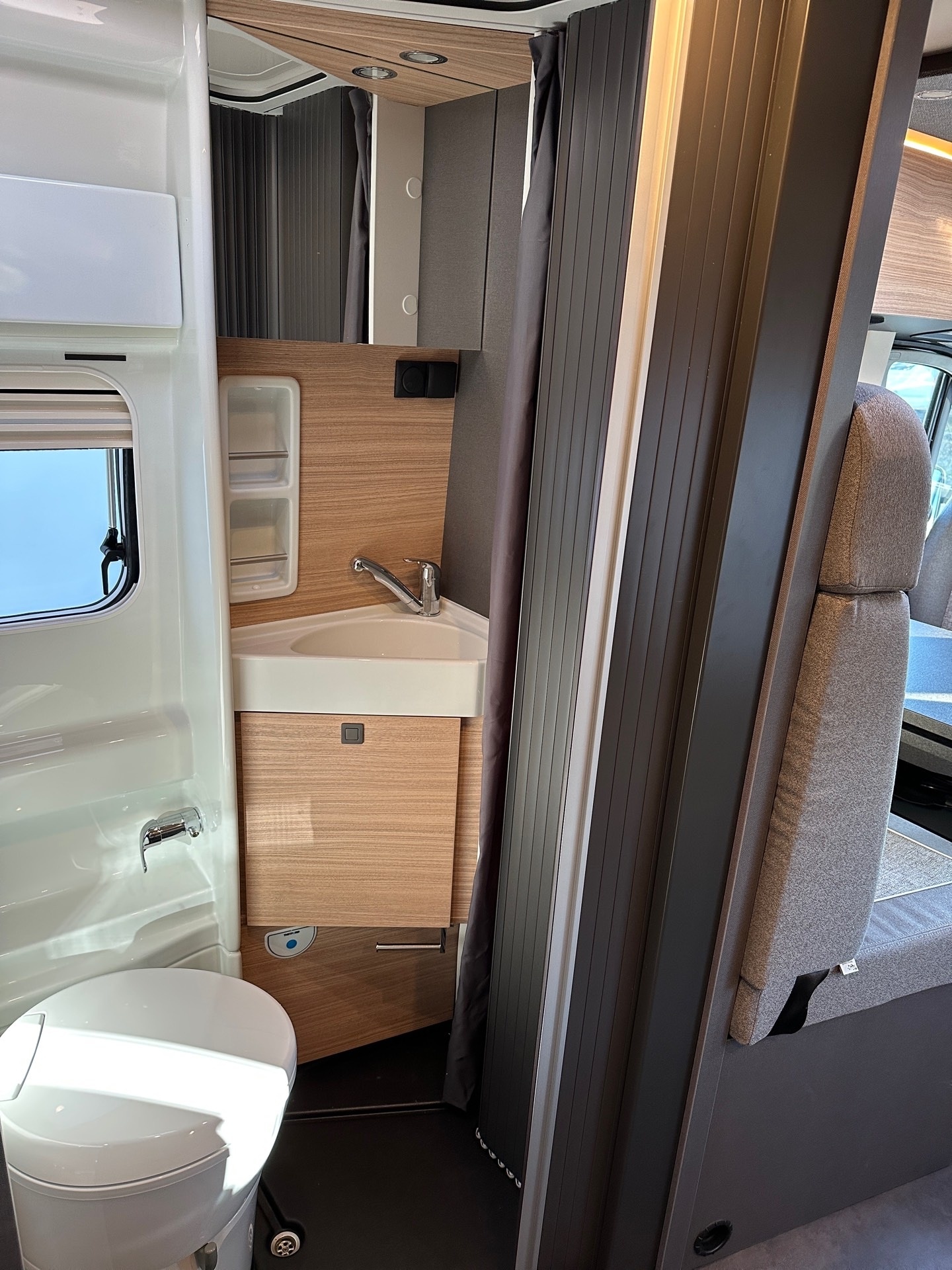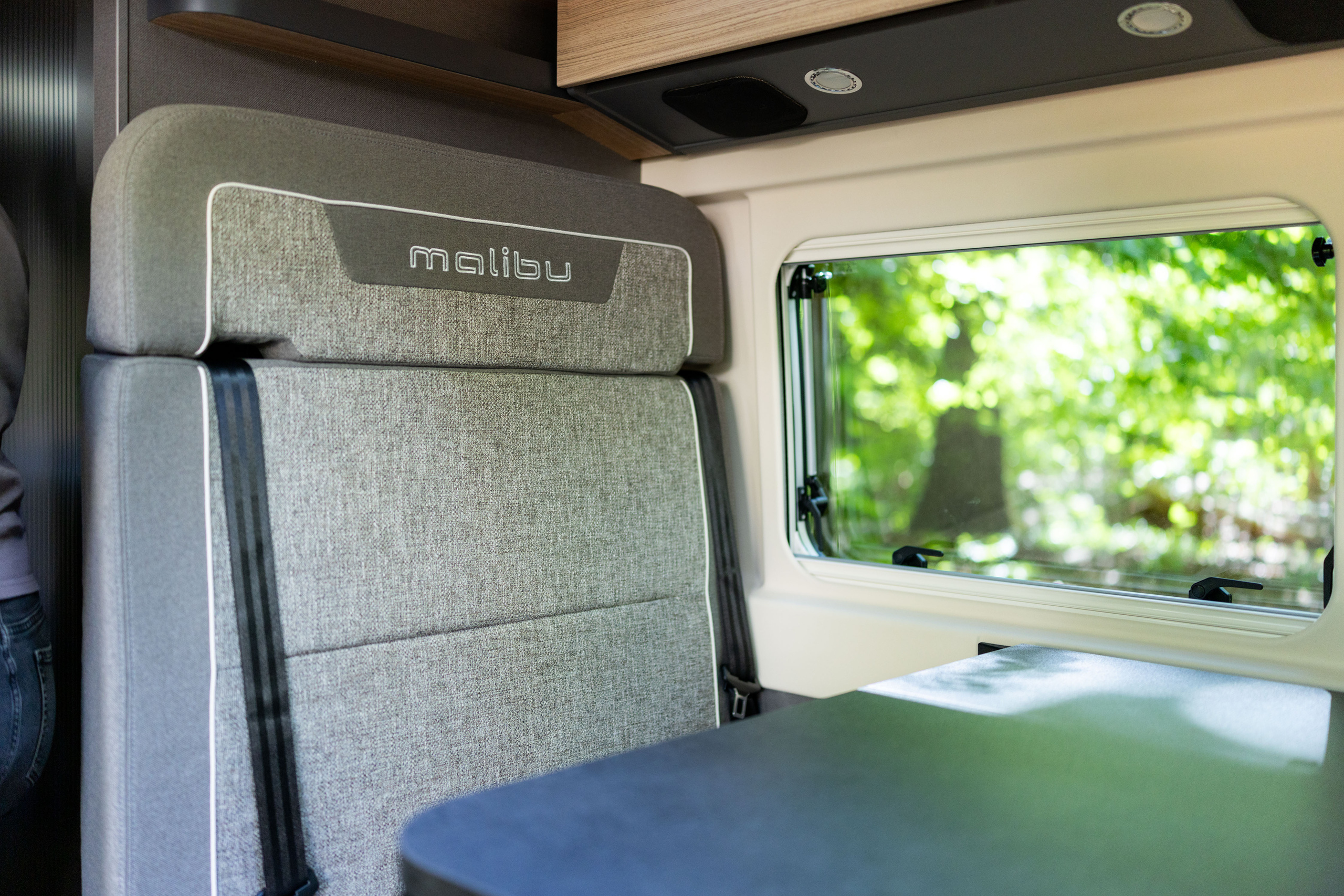 Pilotensitze in Wohnraumstoff bezogen inkl. gepolsterten Armlehnen