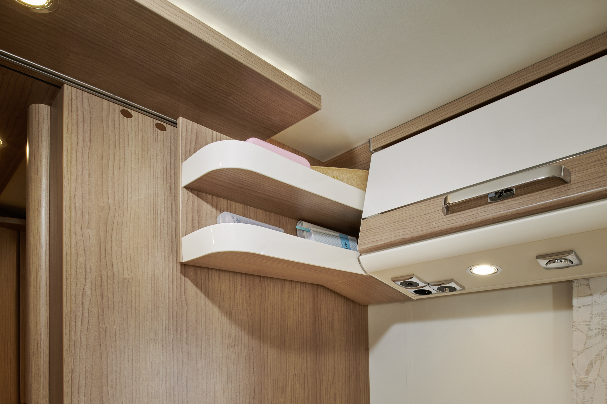 •    USB-Steckdose im Dachstauschrank über Heckbett----