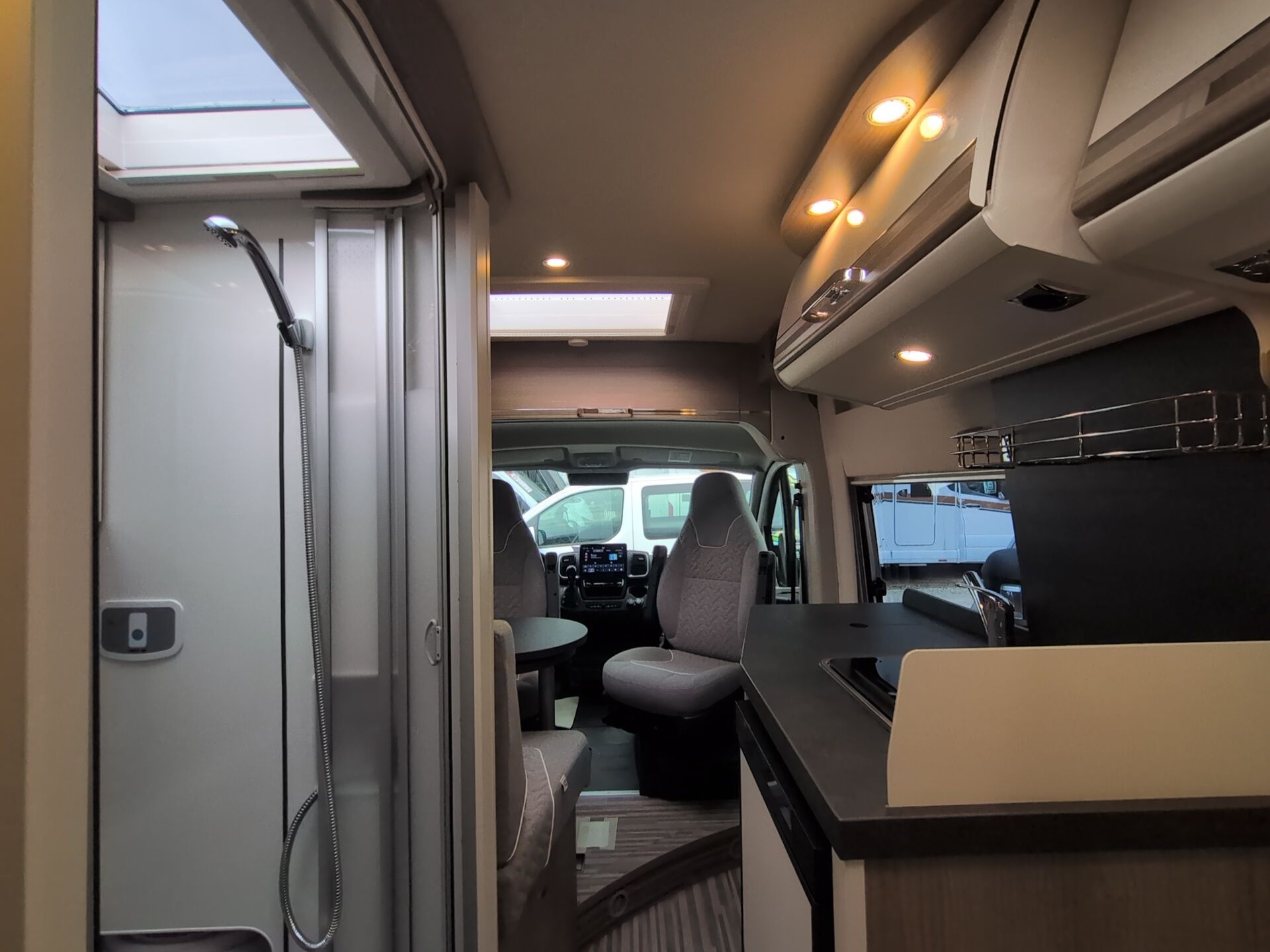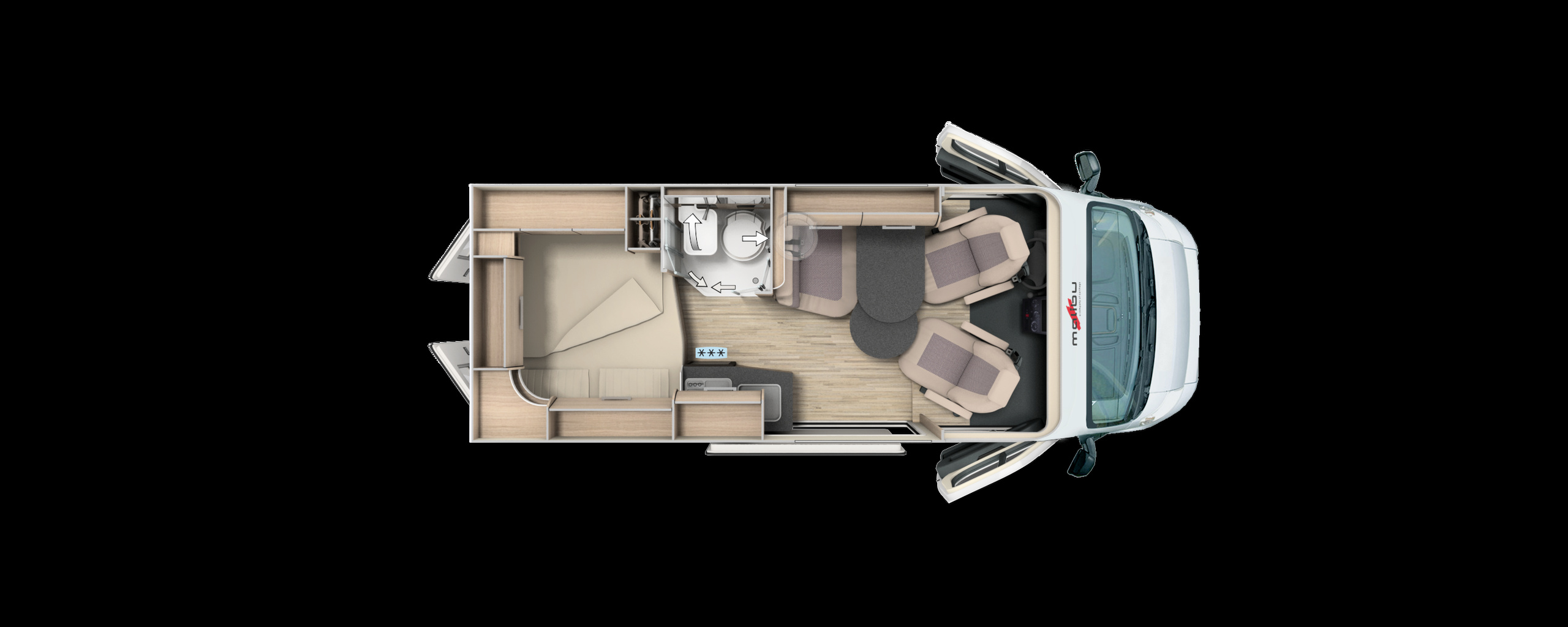 •    Pilotensitze in Wohnraumstoff bezogen inkl. gepolsterten Armlehnen