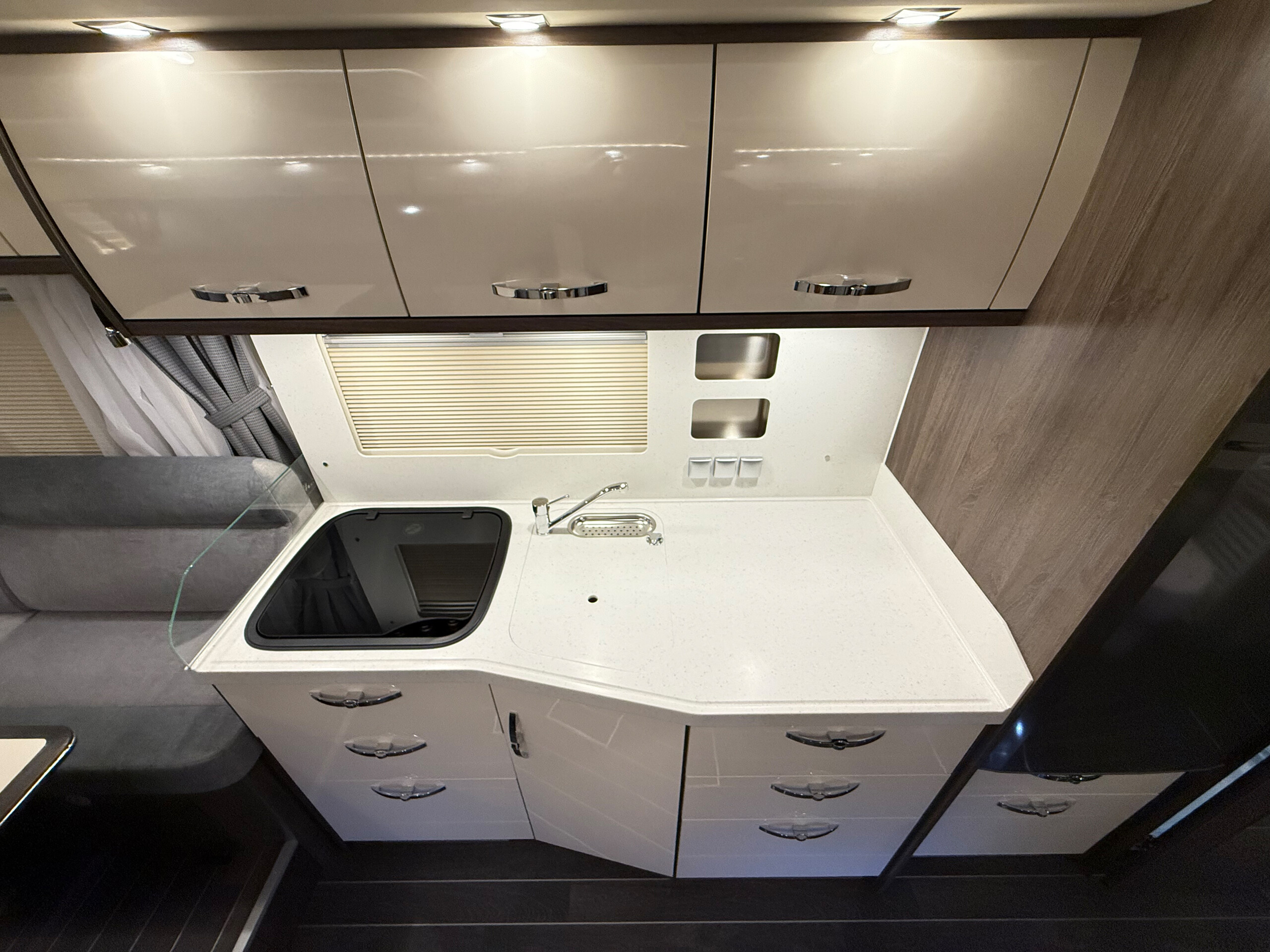 - Scheibe zwischen Küche und Sitzgruppe gerundet