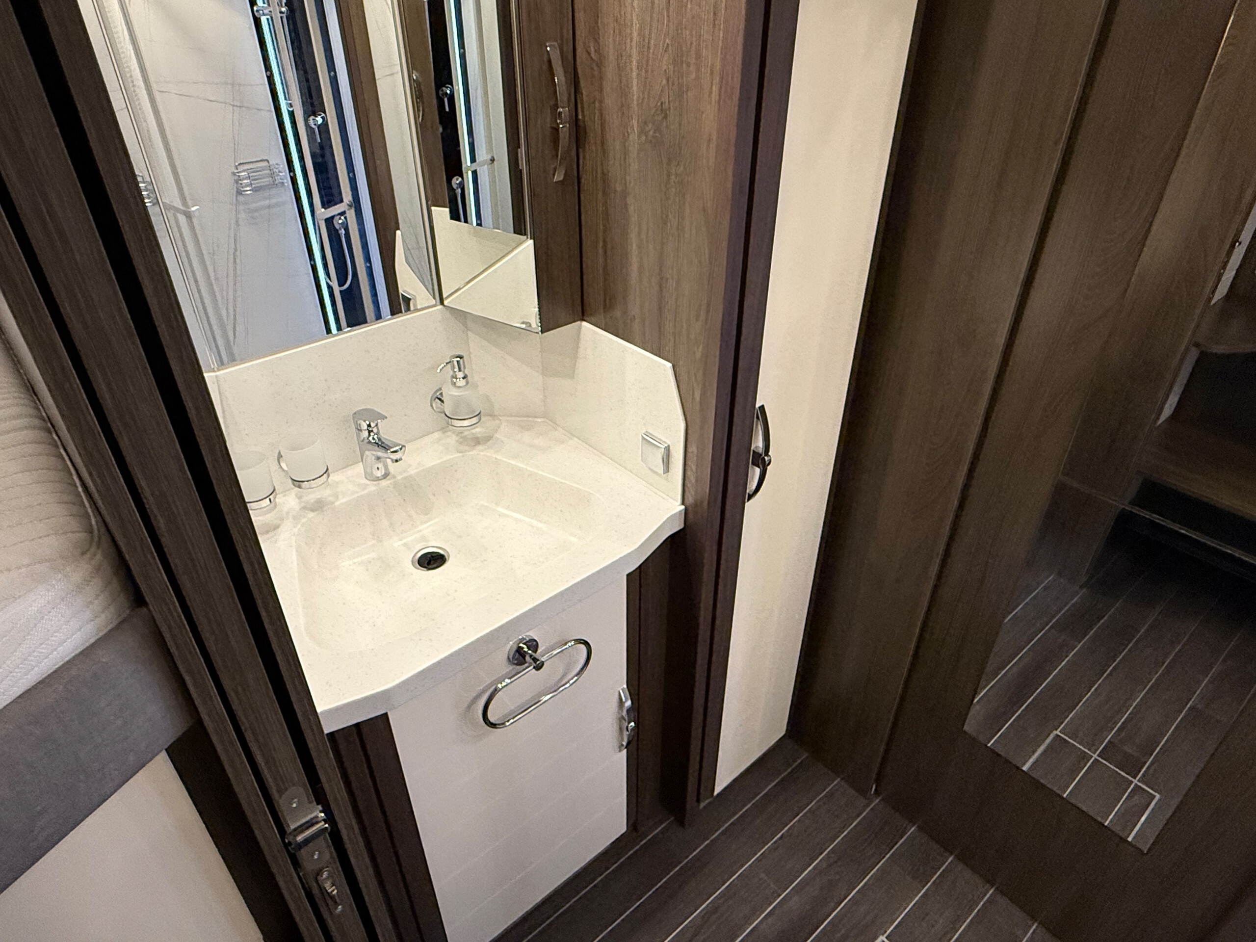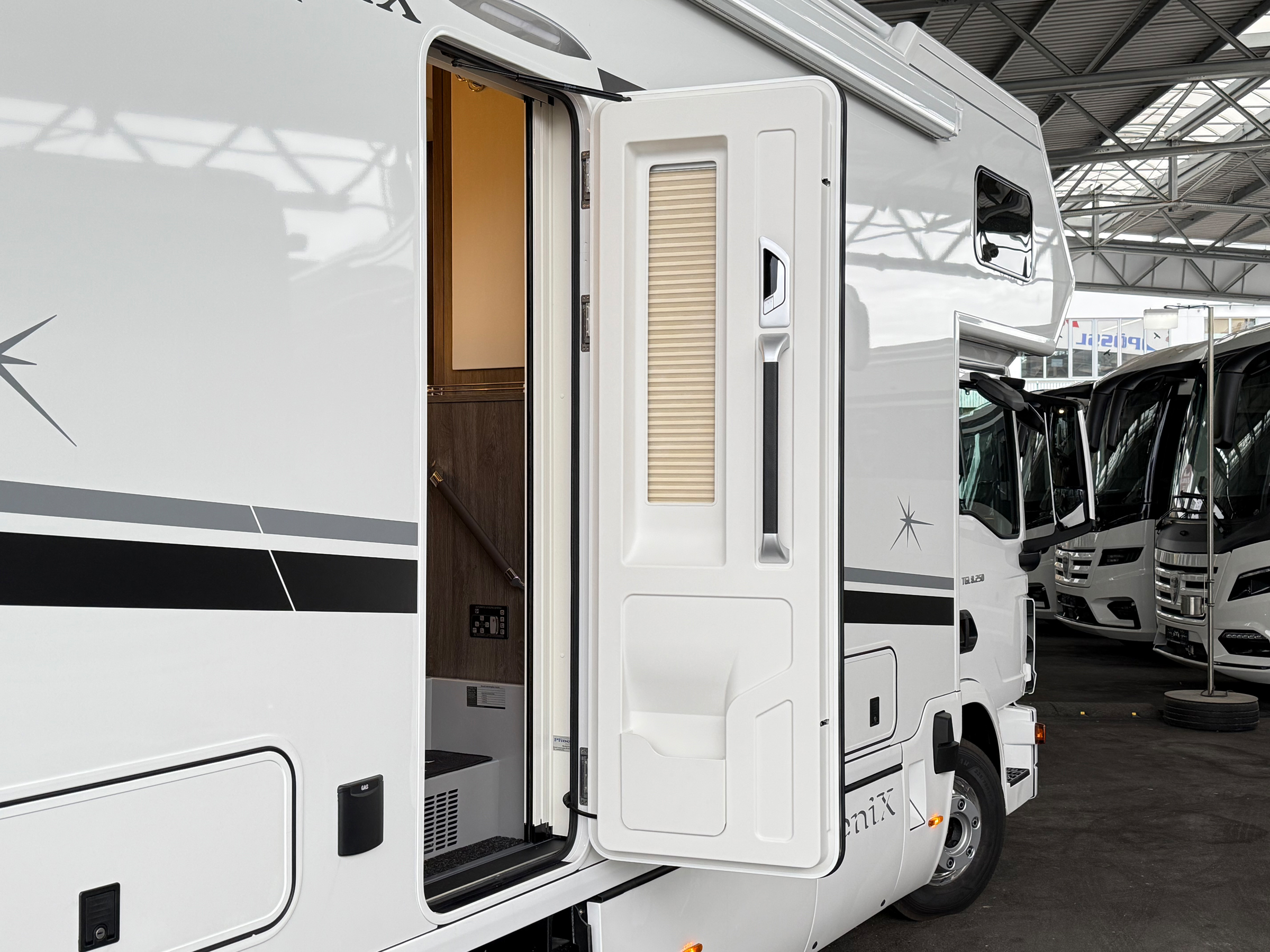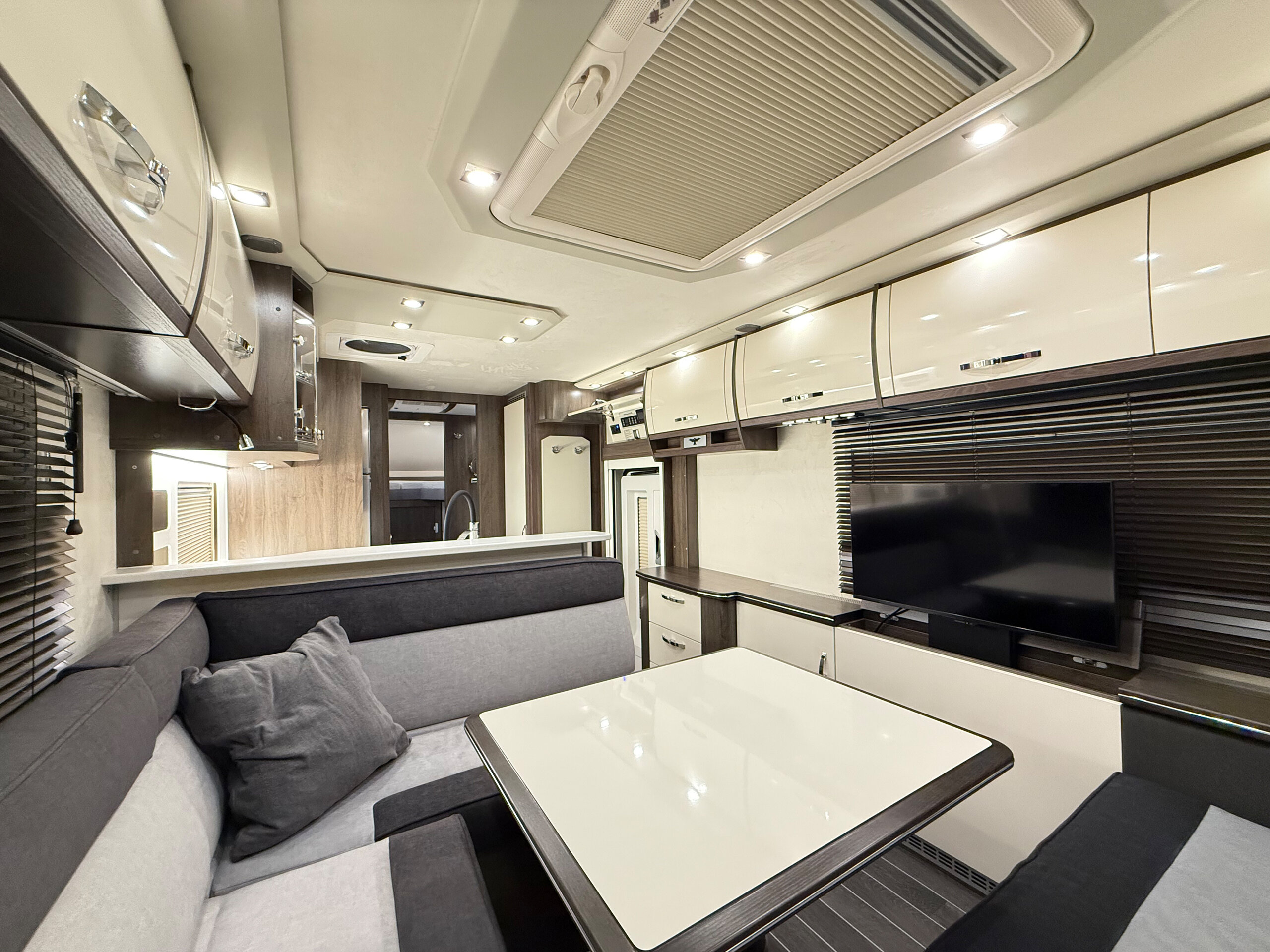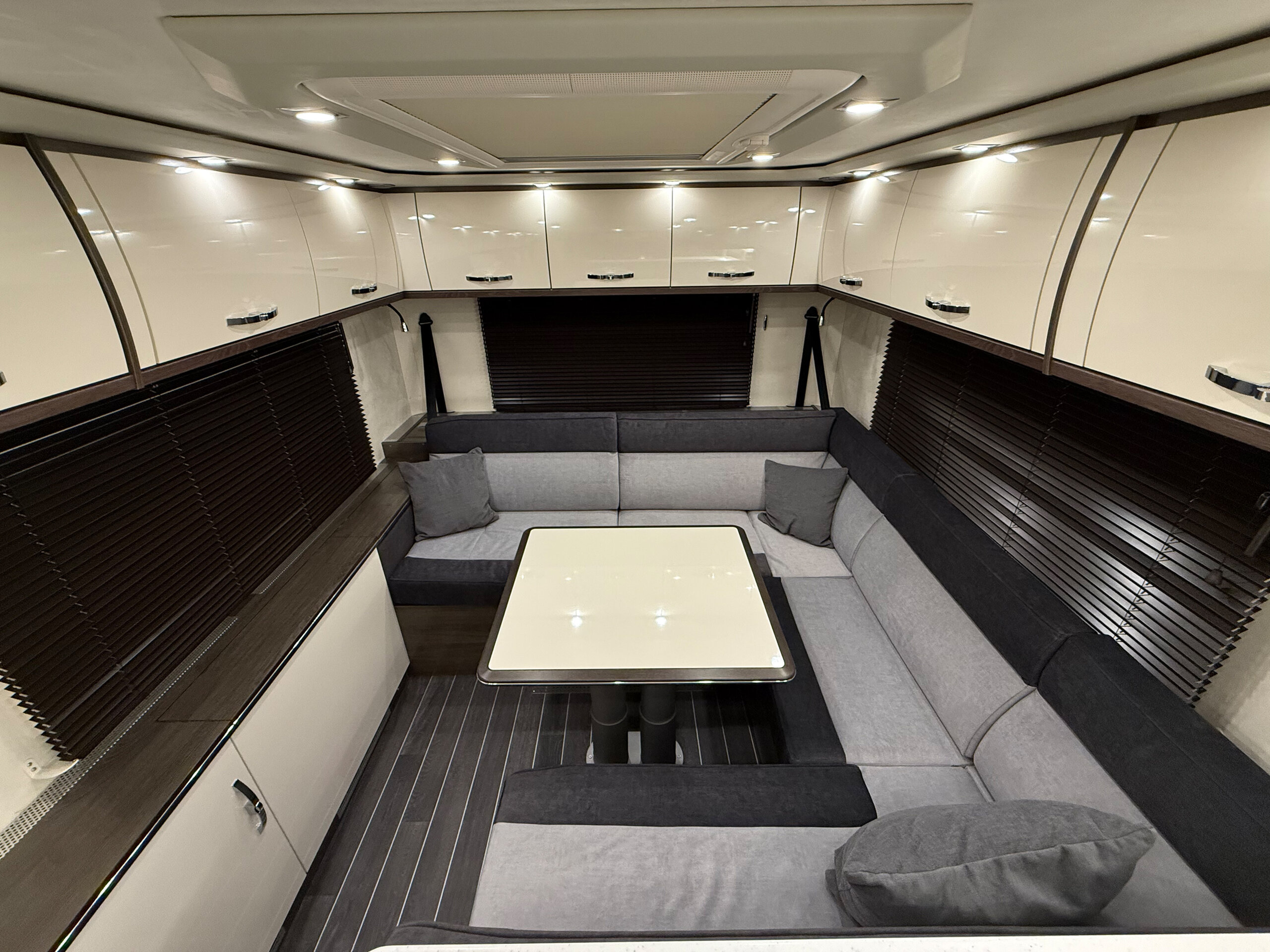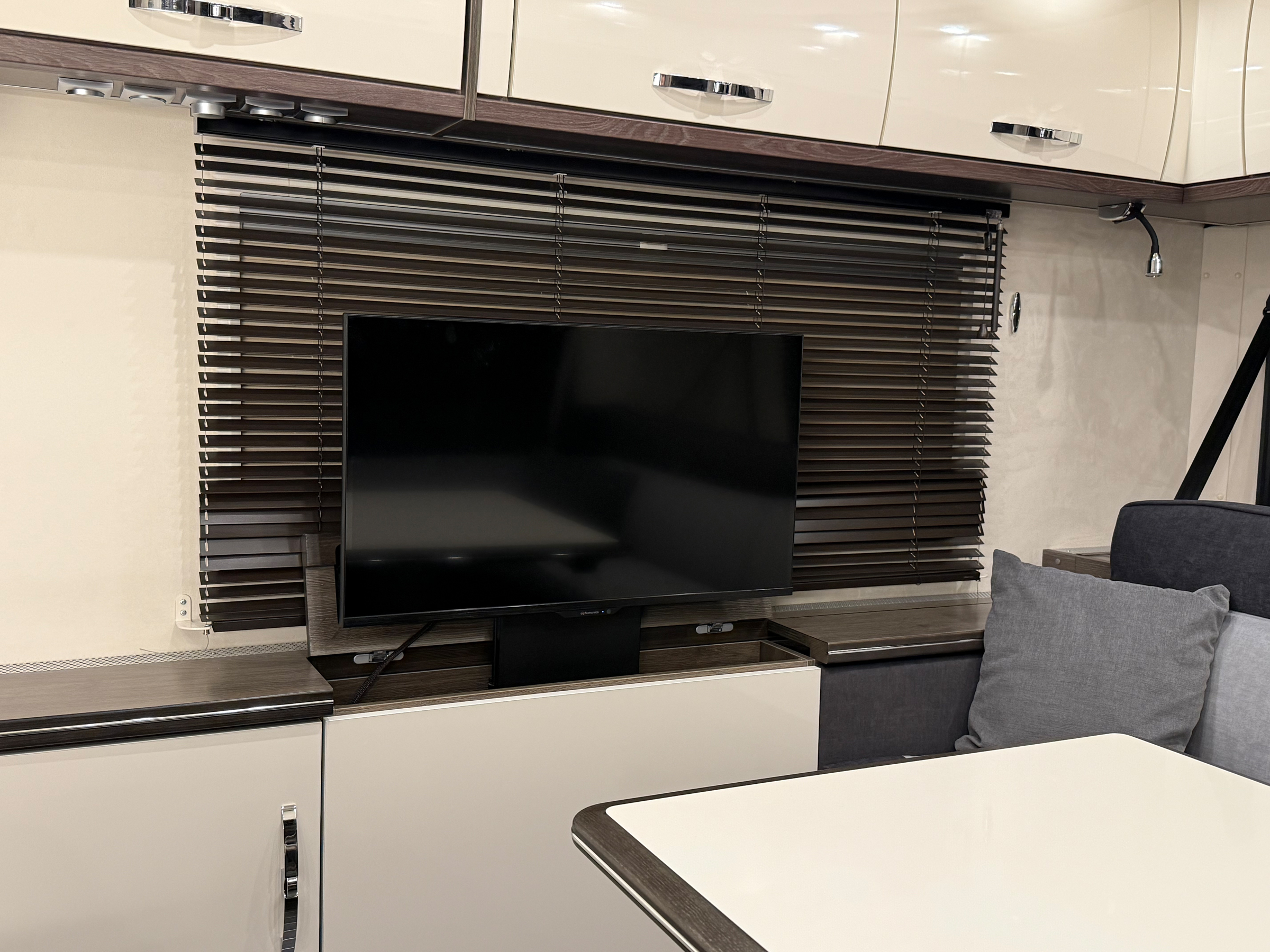 - Holzjalousie in der Sitzgruppe auf der Fahrerseite