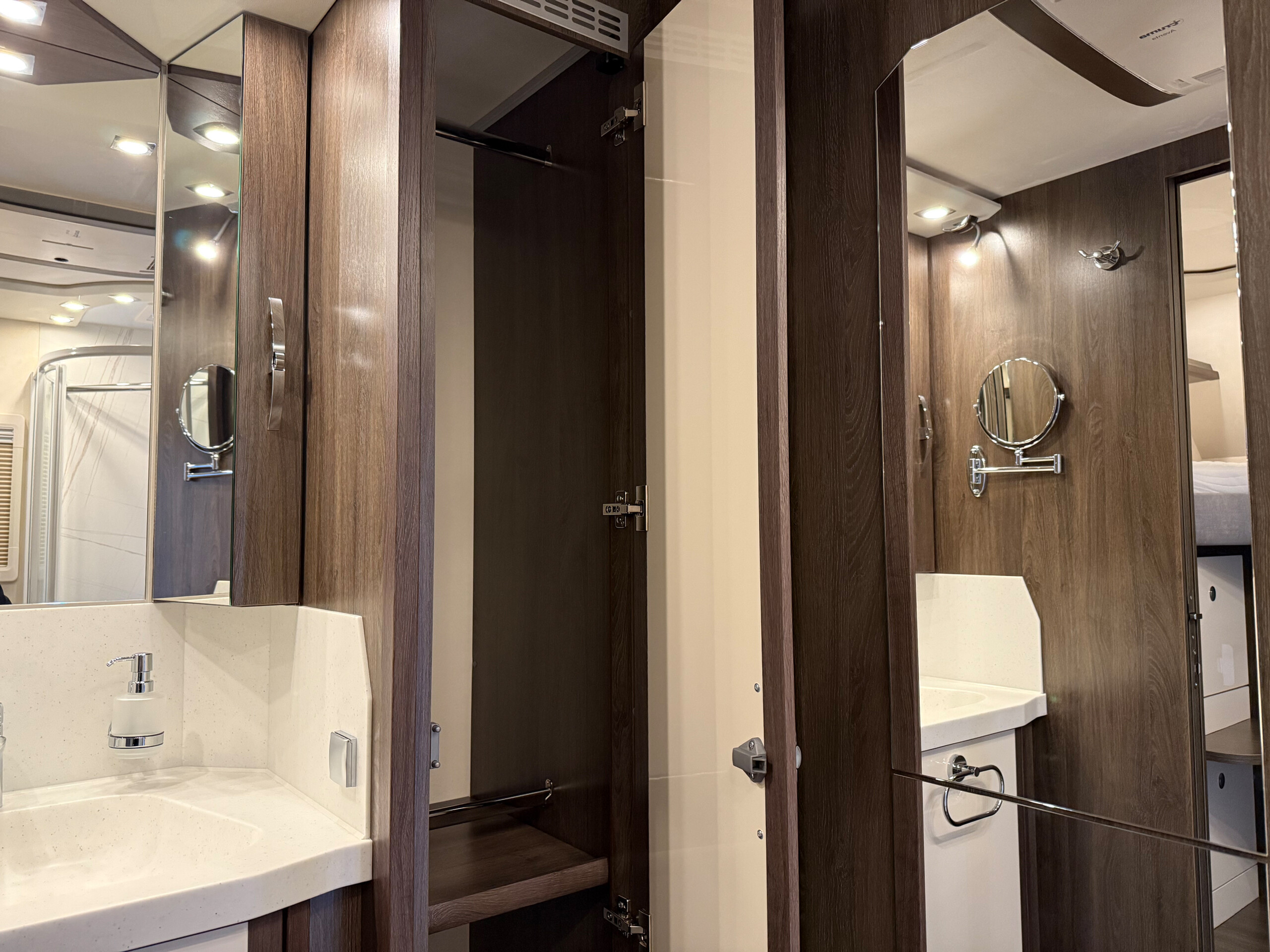 - je ein Ablagefach im Alkoven auf Fahrer- und Beifahrerseite