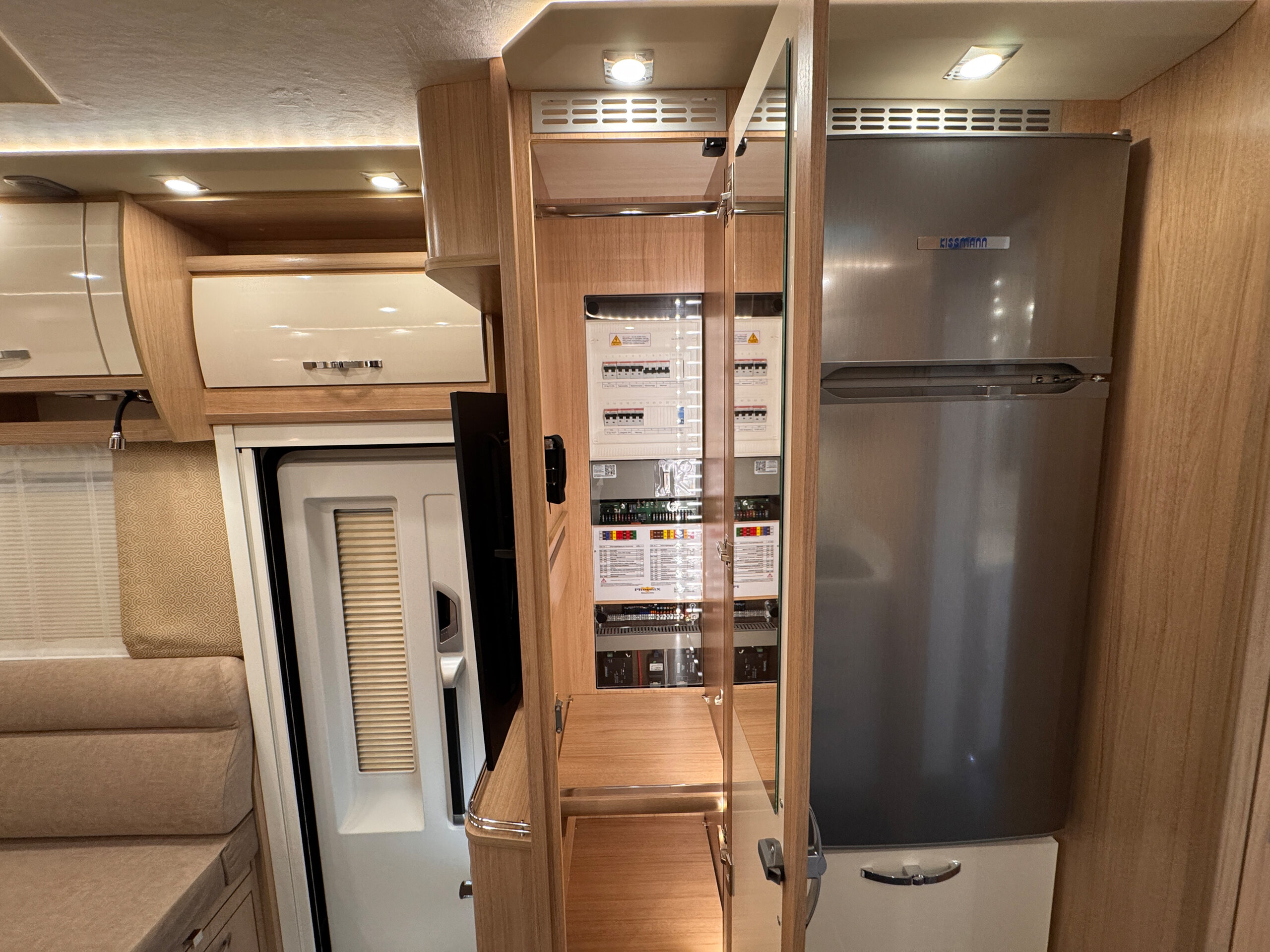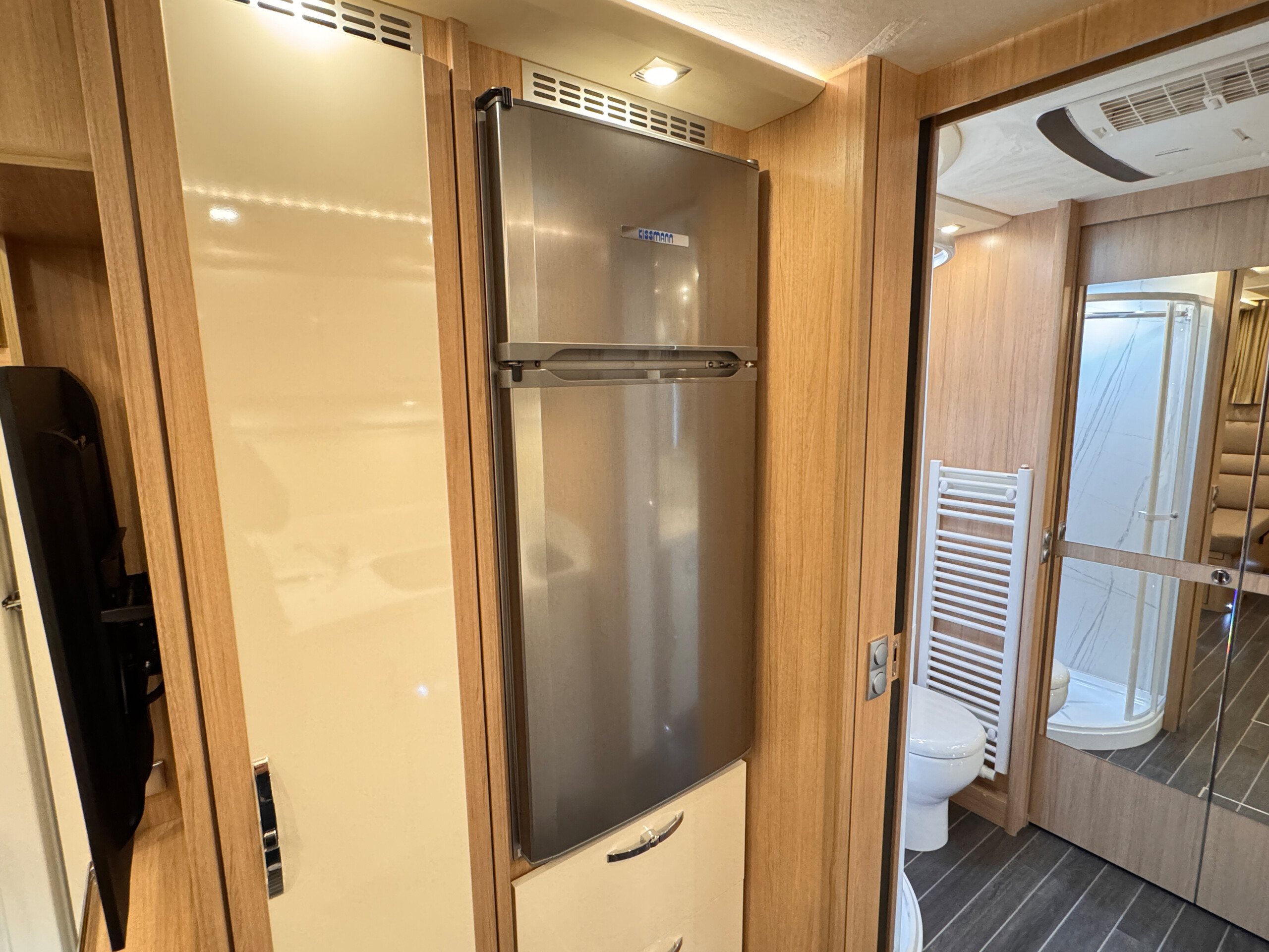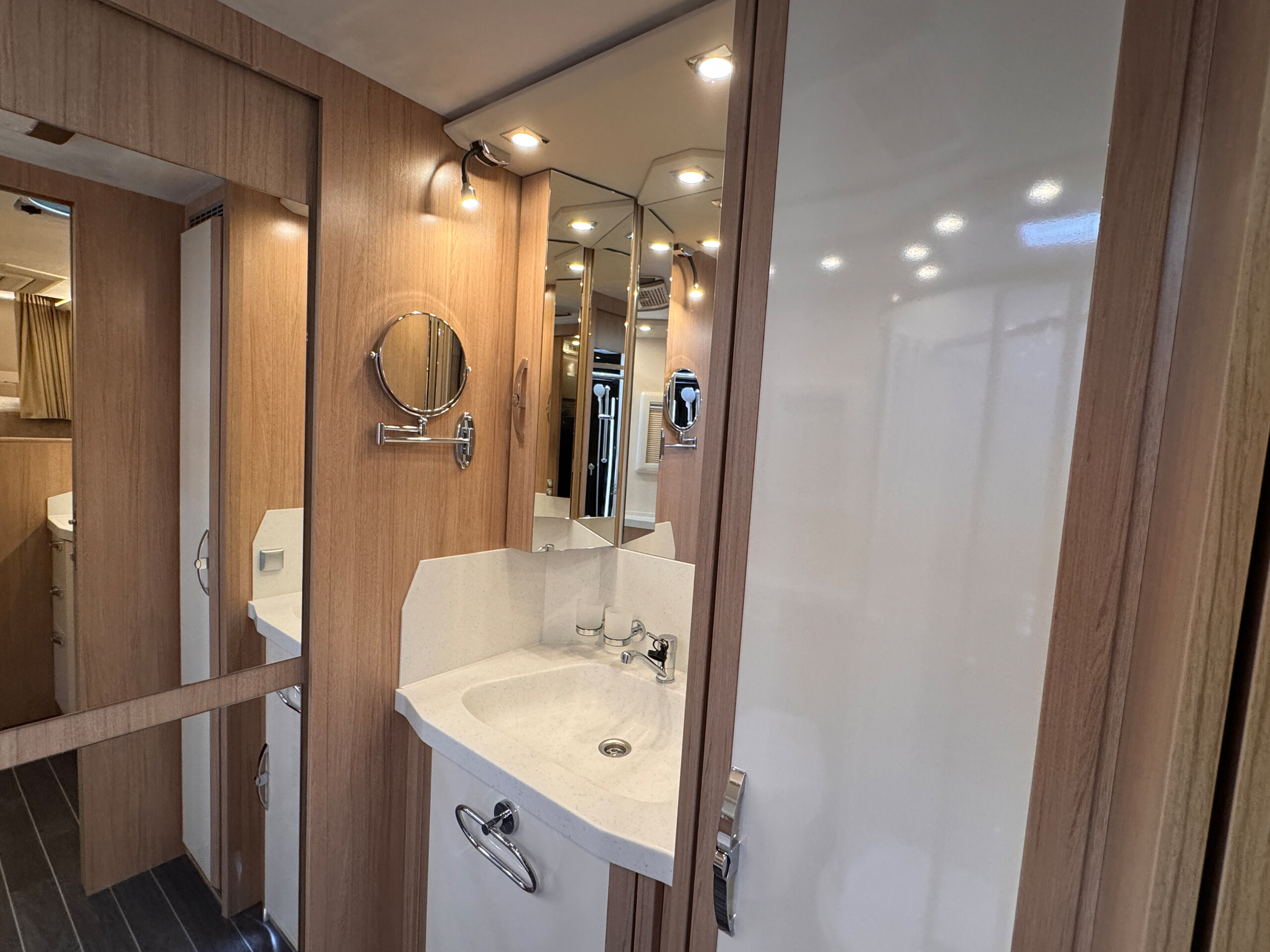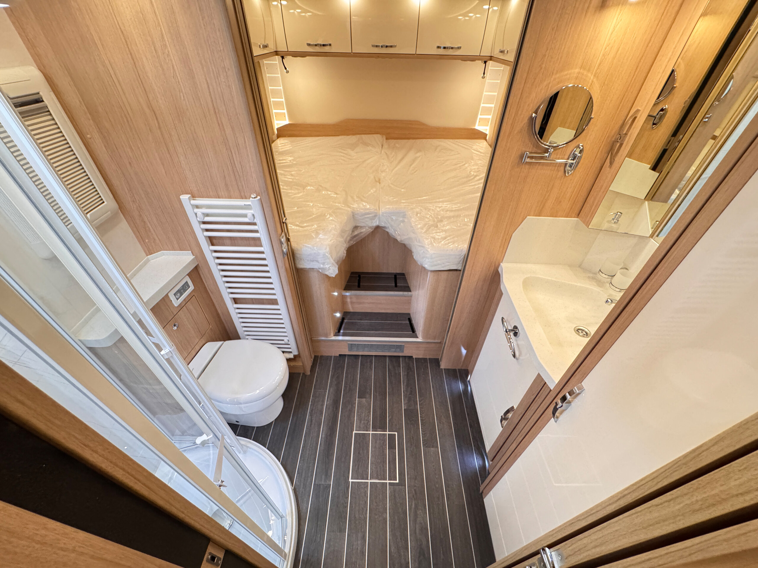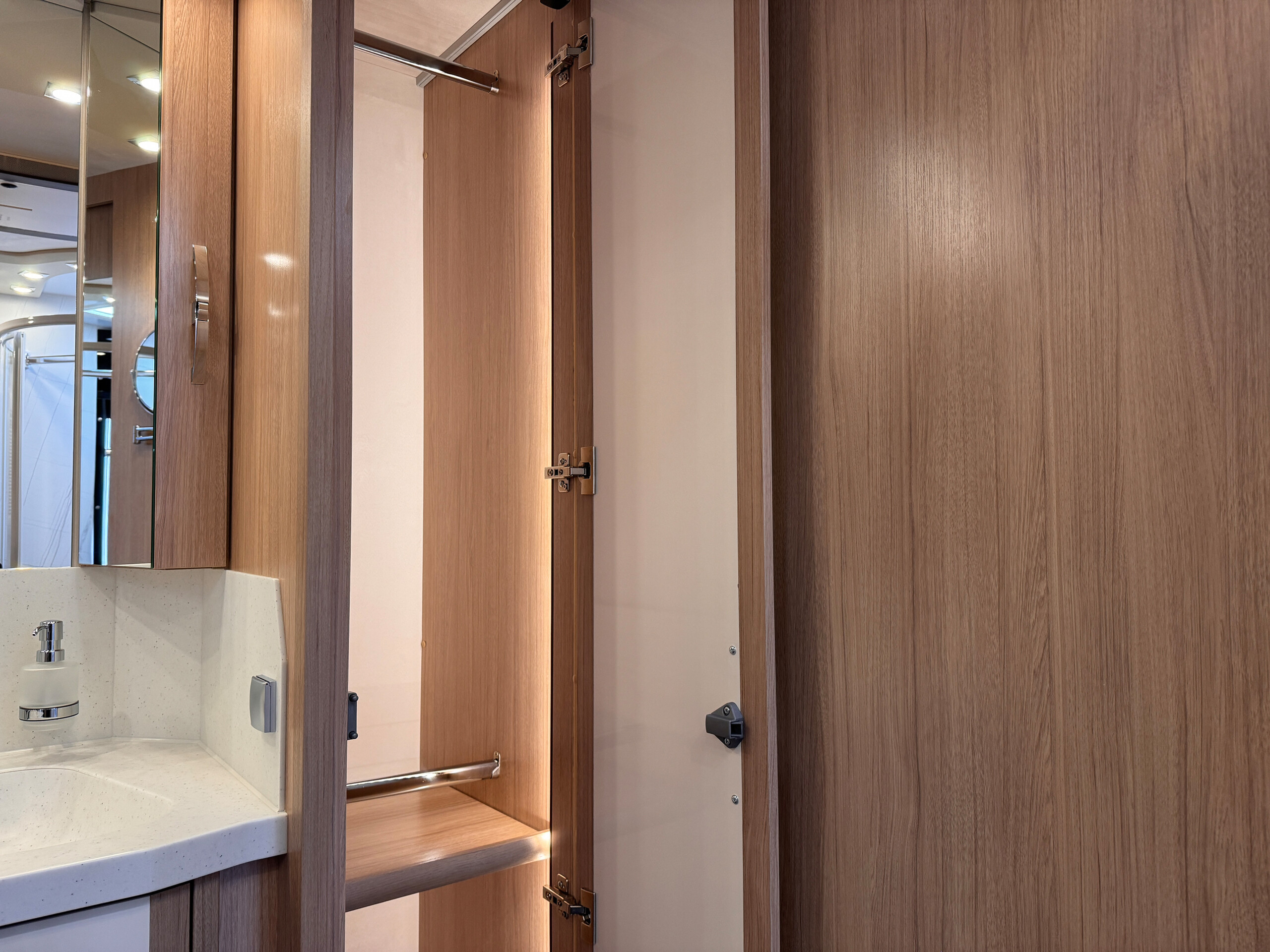 - Schiebetüren gegenläufig zwischen Bad und Heckbett